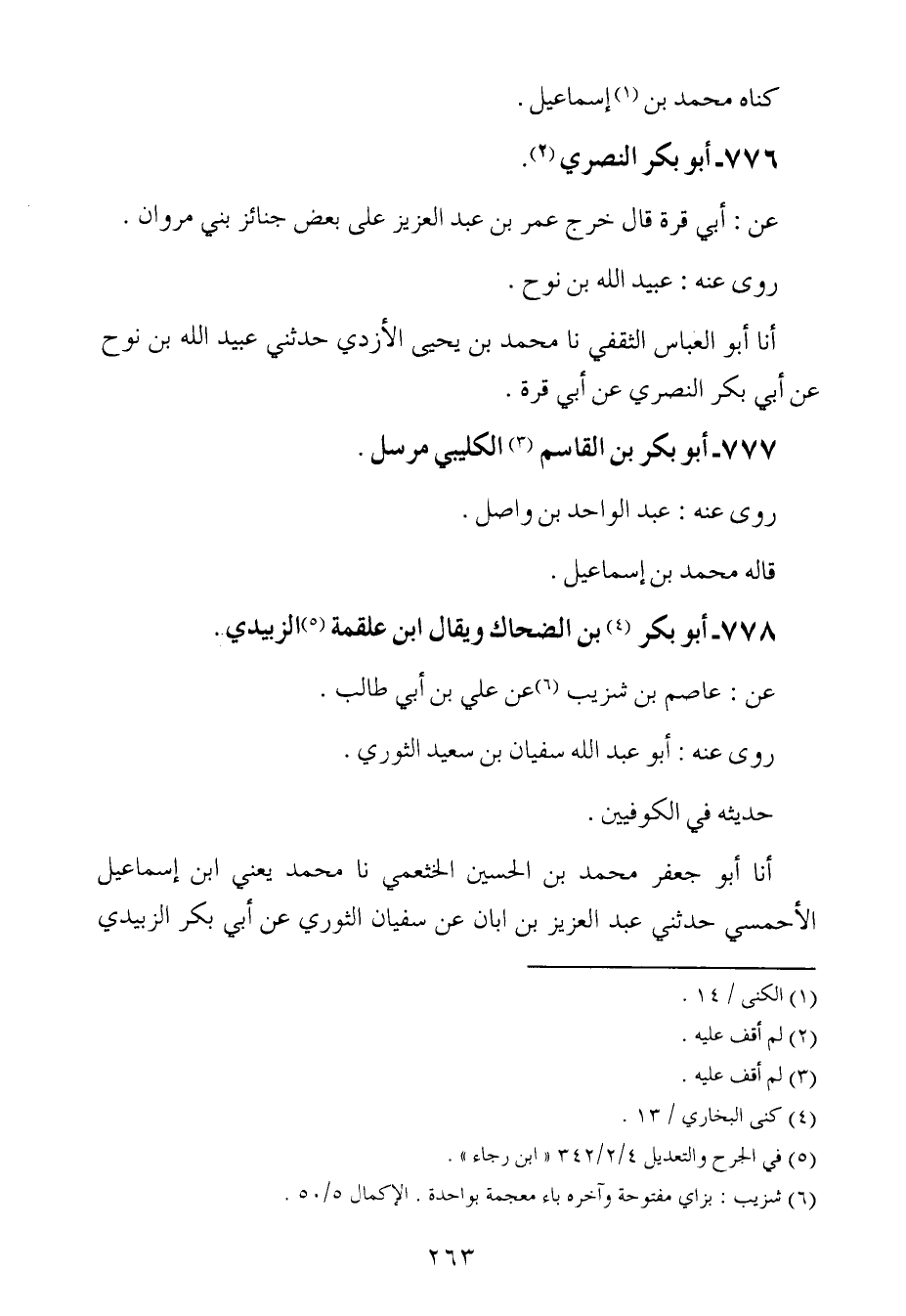 أَخْبَرنا أبو جعفر محمد بن الحسين الخثعمي ، حَدَّثنا محمد ، يَعنِي ابن إسماعيل الأحمسي حدثني عبد العزيز بن أبان عن سفيان الثوري عن أبي بكر الزبيدي عن عاصم بن شزيب.