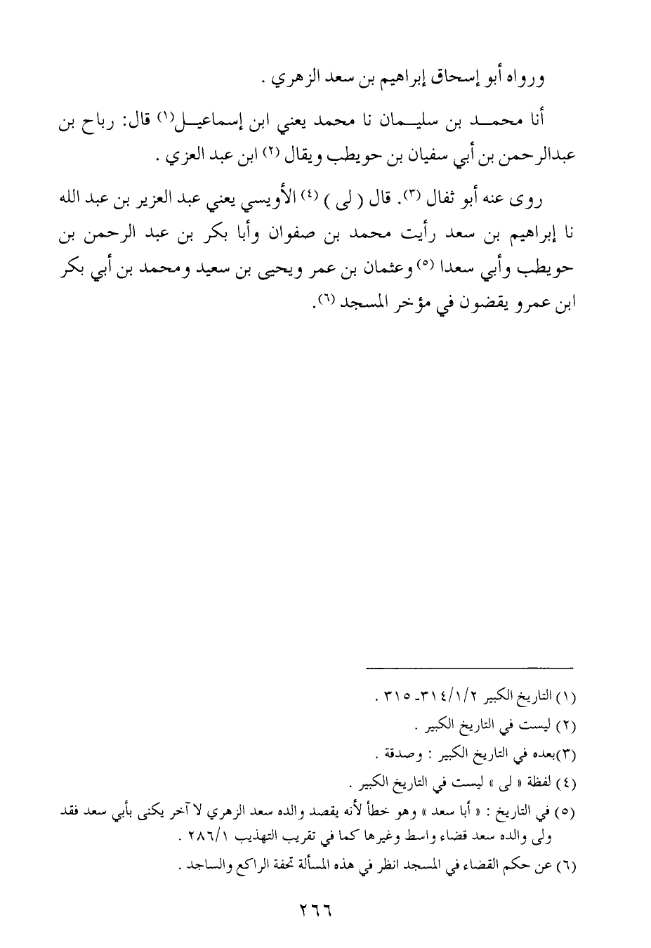 رَوَى عَنه أبو ثفال قال لي الأويسي ، يَعني عبد العزيز بن عبد الله ، حَدَّثنا إبراهيم بن سعد رأيت محمد بن صفوان ، وَأبا بكر بن عبد الرحمن بن حويطب ، وَأبِي سعدا وعثمان بن عُمَر ويحيى بن سعيد ، وَمُحَمد بن أبي بكر بن عَمْرو يقضون في مؤخر المسجد.