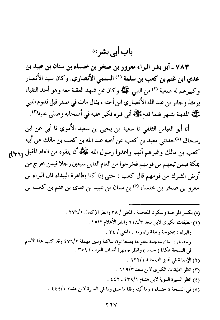783 - أبو بشر البراء معرور بن صخر بن خنساء بن سنان بن عبيد بن عدي ابن غنم بن كعب بن سلمة السلمي الأنصاري.