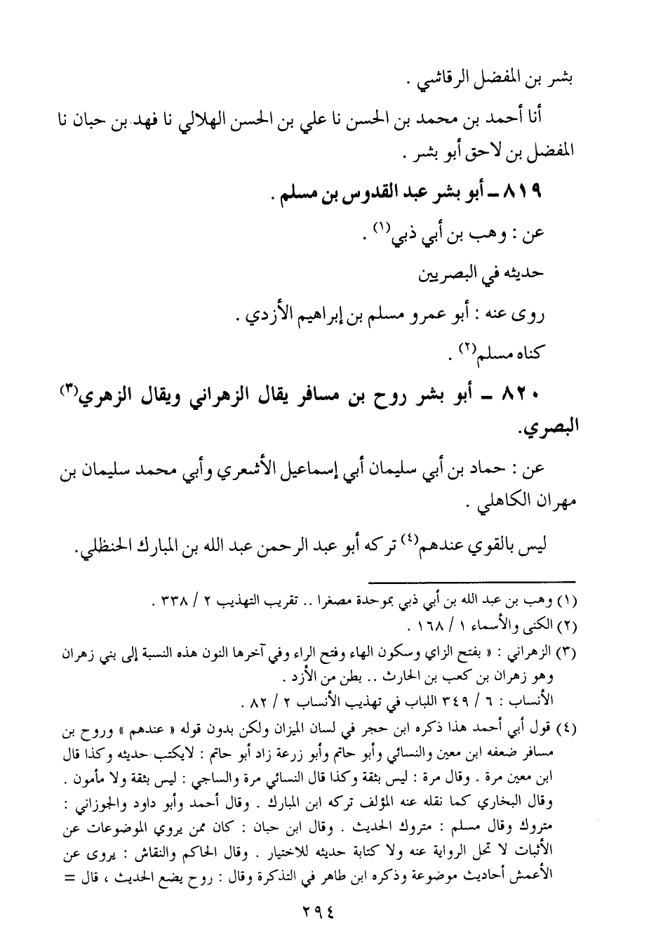 820- أبو بشر روح بن مسافر يقال الزهراني ، وَيُقَال : الزهري البصري.