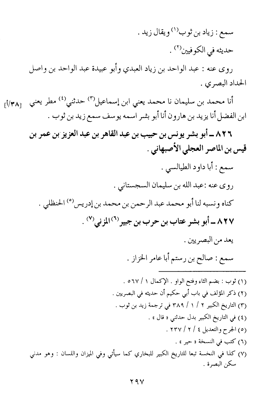 826- أبو بشر يونس بن حبيب بن عبد القاهر بن عبد العزيز بن عُمَر بن قيس بن الماصر العجلي الأصبهاني.
