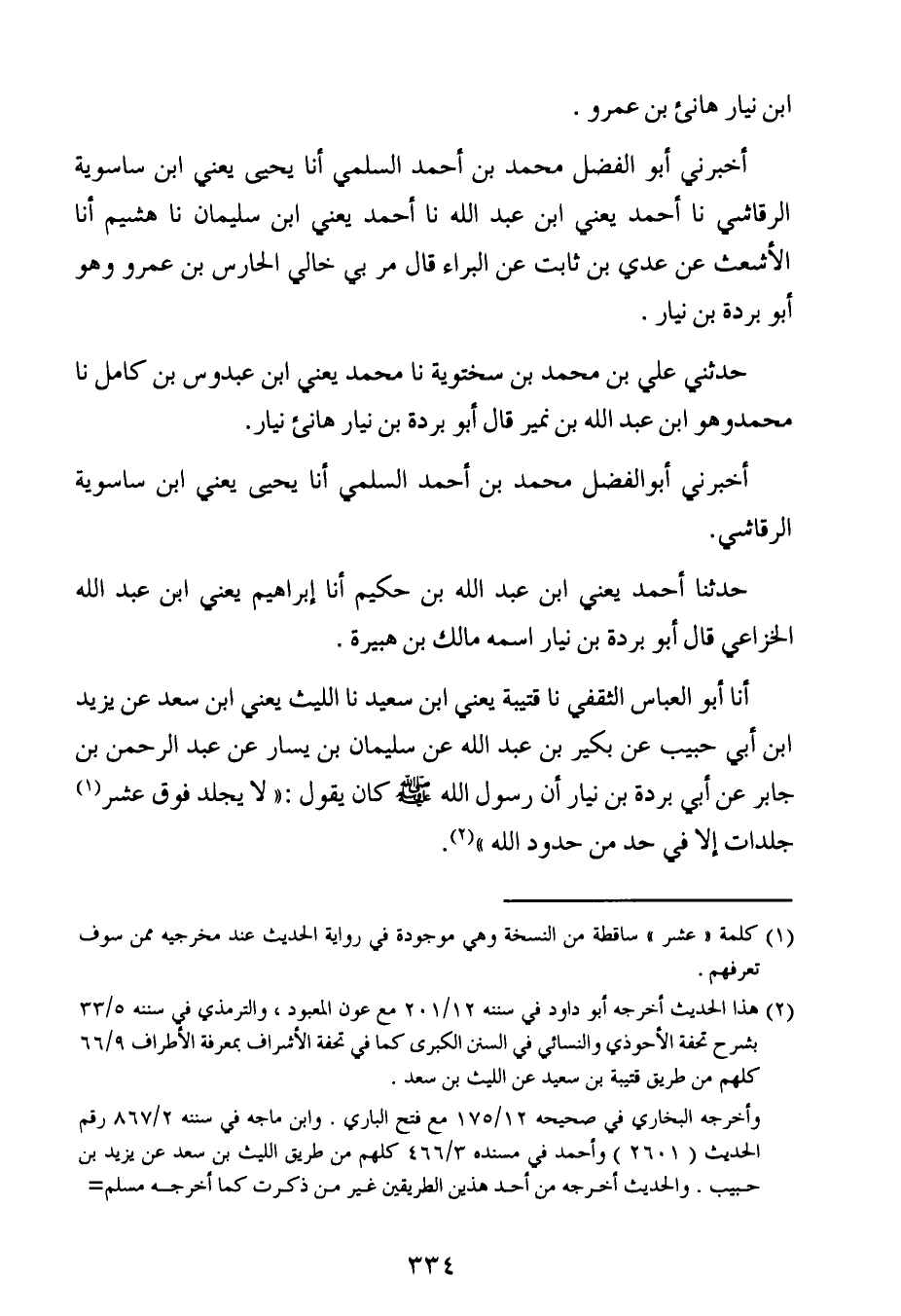 حدثني علي بن محمد بن سختوية ، حَدَّثنا محمد ، يَعنِي ابن عبدوس بن كامل ، حَدَّثنا محمد ، وَهُو ابن عبد الله بن نمير قال أب وبردة بن نيار هانِئ نيار.