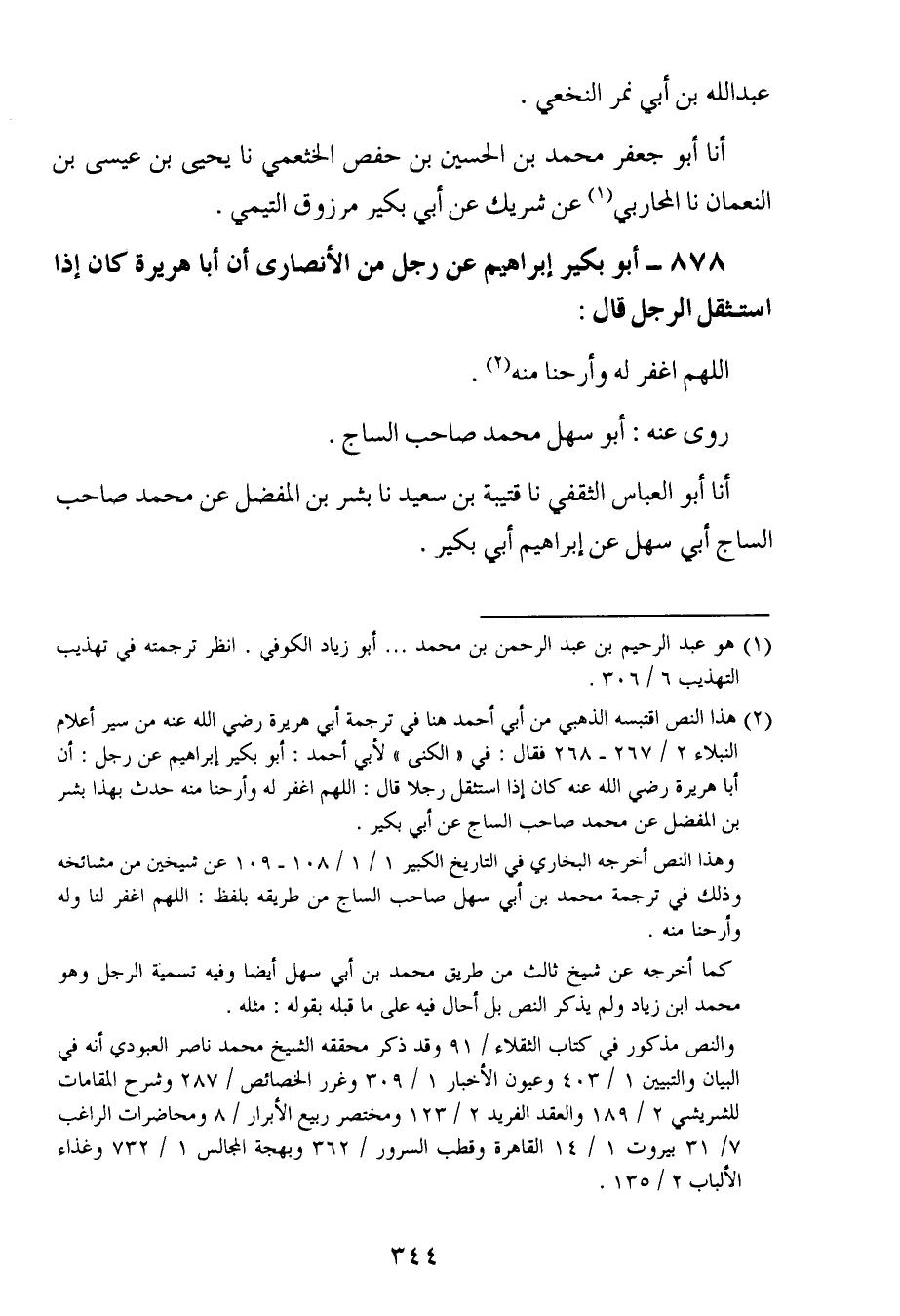 878- أبو بكير إبراهيم عن رجل من الأنصارى أن أبا هريرة كان إذا استثقل الرجل قال : اللهم اغفر له وأرحنا منه.