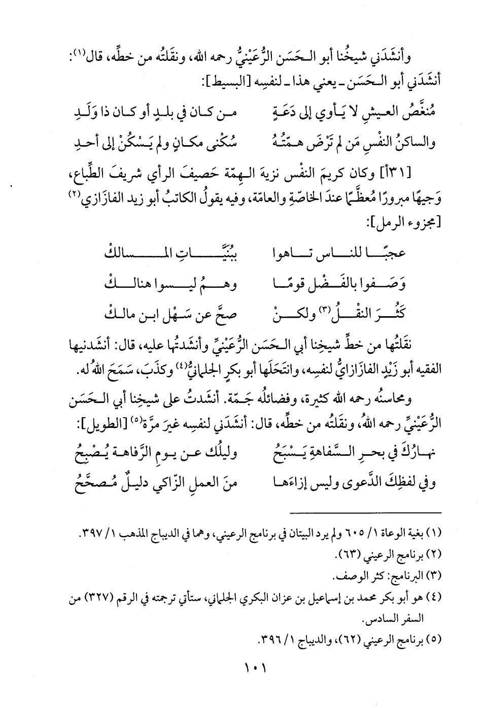 (¬1) بغية الوعاة 1/ 605 ولم يرد البيتان في برنامج الرعيني، وهما في الديباج المذهب 1/ 397.