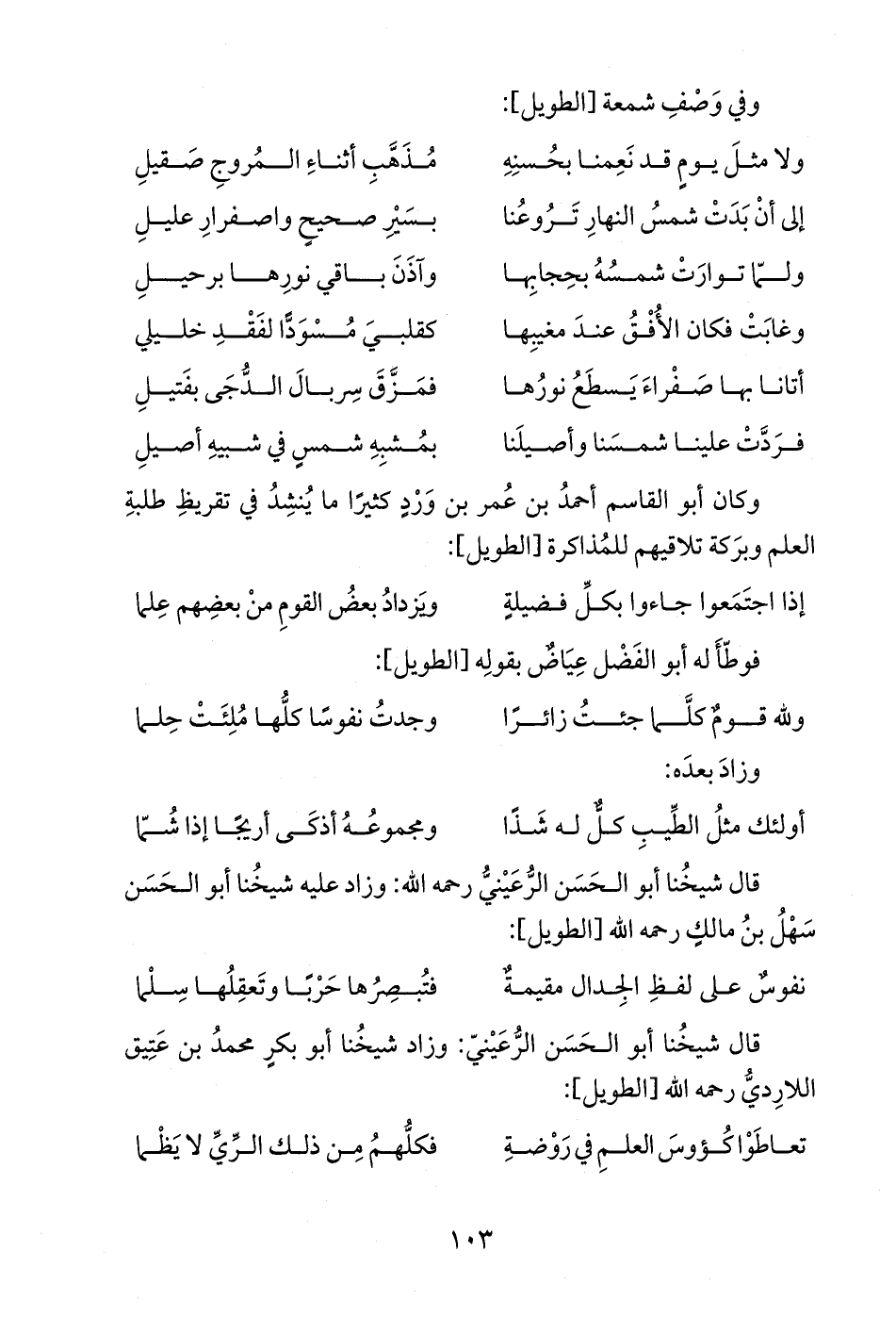 قال شيخُنا أبو الحَسَن الرُّعَيْنيُّ رحمه الله: وزاد عليه شيخُنا أبو الحَسَن سَهْلُ بنُ مالكٍ رحمه الله [الطويل]: