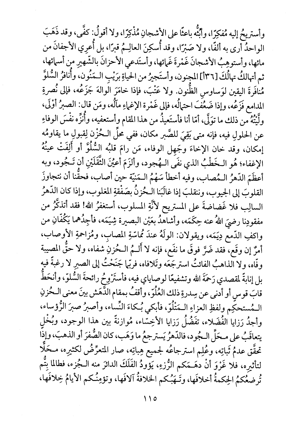 وأستريحُ إليه مُفكِرًا، وأبُثُّه باعثًا على الأشجانِ مُذْكِرًا, ولا أقولُ: كفَّى، وقد ذَهَبَ الواحدُ أرى به ألفًا, ولا صَبْرًا، وقد أُسكِنَ العالِمُ قبرًا، بل أُعرِي الأجفانَ من مائها، وأستوهِبُ الأشجانَ غَمْرةَ غَمائها، وأستَدعي الأحزانَ بالشّهيرِ من أسمائها، ثم أتهالكُ تهالُكَ [36 أ] المجنون، وأستَجيرُ من الحياةِ برَيْب المَنُون، وأُنافرُ السُّلوَّ مُنافَرةَ اليقين لوَساوسِ الظُّنون. ولا عَتْبَ، فإذا خامَرَ الَوالهَ جَزَعُه، فإلى نُصرةِ المدامع فزَعُه، وإذا ضَعُفَ احتمالُه، فإلى غَمْرة الإغماءِ مآله، ومَن قال: الصبرُ أوْلَى، ولَّيْتُهُ من ذلك ما توَلَّى، أمّا أنا فأستَعيذُ من هذا المقام وأستعفيه، وأُنزِّه نفْسَ الوفاءِ عن الحلولِ فيه، فإنه متى بَقِيَ للصَّبر مكان، ففي محلِّ الحُزْن لِقبولِ ما يقاومُه إمكان، وقد خان الإخاءَ وجَهِل الوفاء، مَن رامَ قلبُه السُّلُوَّ أو أَلِفَتْ عينُهُ الإغفاء؛ هُو الخَطْبُ الذي نفَى الهُجود، وألزَمَ أعيُنَ الثَّقَلَيْنِ أن تَجُود، وبه أعظَمَ الدّهرُ المُصاب، وفيه أخطأ سَهْمُ المَنيّة حين أصاب، فحقُّنا أن نتجاوزَ القلوبَ إلى الجيوب، وننقلبَ إذا غالَبَنا الحُزنُ بصَفْقةِ المغلوب، وإذا كان الدّهرُ السالِب فلا غَضاضةَ على المستريح لأنَّةِ المسلوب، أستغفرُ الله! فقد أتذكَّرُ من مفقودِنا رضيَ اللهُ عنه حِكَمَه، وأشاهدُ بعَيْن البصيرة شِيَمَه، فأجِدُهما يَكُفّانِ من واكفِ الدّمع دِيَمَه، ويقولان: الولَهُ عندَ مُماسّةِ المصابِ، ومُزاحمةِ الأوصاب، أمر إن وقَع، فقد ضَرَّ فوقَ ما نفَع، فإنه لا أَلمُ الحُزنِ شفاه، ولا حقُّ المصيبة وفّاه، ولا الذاهبُ الفائتُ استرجَعَه وتَلافاه، فربّما جَنَحْتُ إلى الصبرِ لا رغبةً فيه بل إنابةً لمقصدي رَحمَةَ الله وتشفيعًا لوصاياي فيه، فأستَرْوِحُ رائحةَ السُّلوّ، وأنحَطُّ قابَ قوس أو أدنى عن سِدر ذلك العُلُوّ، وأقفُ بمقام الدَّهَش بينَ معنى الحُزنِ المُستحكِم ولفظِ العزاءِ المَتْلُوّ، فأبكي بُكاءَ النِّساء، وأصبرُ صبرَ الرُّؤساء، وأجدُ رَزايا الفُضَلاء، تفَضُلُ رَزايا الأخِسّاء، مُوازنةً بين هذا الوجود، وبُخْلٍ يتعاقَبُ على محَلِّ الجُود، فالدّهرُ يَسترجعُ ما وَهَب، كان الصُّفرَ أو الذهبَ، وإذا تحقَّق عدمُ ثَباتِه، وعُلِم استرجاعُه لجميع هِباتِه، صار المتعرِّضُ لكثيرِه، محَلًّا لتأثره، فلا غَرْوَ أنْ دهَمَكم الرُّزءِ، يَؤودُ الفَلَكَ الدائرَ منه الجُزء، فطالما بِتُّم تُرضعُكمُ الحِكمةُ أخلافَها، وتَهَبُكم الخلافةُ آلافَها، وتؤمِنُكم الأيامُ خِلافَها،