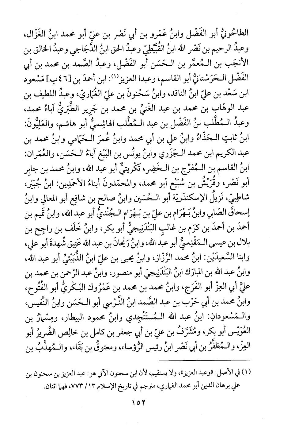 الطاحُونيُّ أبو الفَضْل وابنُ عَمْرو بن أبي نَصْر بن عليّ أبو محمد ابنُ الغَزّال، وعبدُ الرحيم بن نَصْر الله ابنُ القُبَّيْطِيّ وعبدُ الحق ابنُ الدَّجَاجي وعبدُ الخالق بن الأنجَب بن المُعمَّر بن الحَسَن أبو الفَضْل، وعبدُ الصَّمد بن محمد بن أبي الفَضْل الحَرَسْتانيُّ أبو القاسم، وعبدا العزيز (¬1): ابن أحمدَ بن [46 ب] مَسْعود ابن سَعْد بن عليّ ابنُ النَّاقد، وابنُ سَحْنونَ بن عليّ الغُمَاريّ، وعبدُ اللطيف بن عبد الوهّاب بن محمد بن عبد الغَنيِّ بن محمد بن جَرِير الطَّبَريُّ آباءُ محمد، وعبدُ المُطَّلب بنُ الفَضْل بن عبد المُطَّلب الهاشِميُّ أبو هاشم، والعَلِيُّونَ: ابنُ ثابتٍ الحَذّاءُ وابنُ علي بن أبي محمد وابنُ عُمرَ الحَمّامي وابنُ محمد بن عبد الكريم ابن محمد الجَزَري وابنُ يونُس بن البَبْغ آباءُ الحَسَن، والعُمَران: ابنُ القاسم بن المُفرِّج بن الخَضِر، تَكْريتيٌّ أبو عبد الله، وابنُ محمد بن جابِر أبو نَصْر، وقُرَيْشُ بن سُبَيْع أبو محمد، والمحمّدونَ أبناءُ الأحمَدِين: ابنُ جُبَيْر، شاطِبيّ، نَزيلُ الإسكندَريّة أبو الحُسَين وابنُ صالح بن شافِع أبو المعالي وابنُ إسحاقَ الصّابي وابنُ بَهْرَام بن عليّ بن بَهْرَام الجُنْديُّ أبو عبد الله، وابنُ تمَيم بن أحمدَ بن أحمدَ بن كرَم بن غالبٍ البَنْدَنِيجيُّ أبو بكر، وابنُ خَلَف بن راجِح بن بلال بن عيسى المَقْدِسيُّ أبو عبد الله، وابنُ رَيْحانَ بن عبد الله عَتِيق شُهدةَ أبو علي، وابنا السَّعيدَيْن: ابنُ محمد الرَّزّاز، وابنُ يحيى بن عليّ ابنُ الدُّبَيْثيِّ أبو عبد الله، وابنُ عبد الله بن المبارَك ابنُ البَنْدَنِيجيّ أبو منصور، وابنُ عبد الرّحمن بن محمد بن عليِّ أبي العِزّ أبو الفَرَج، وابنُ محمد بن محمد بن عَمْرُوك البَكْريُّ أبو الفُتُوح، وابنُ محمد بن أبي حَرْب بن عبد الصَّمد ابنُ النَّرْسي أبو الحَسَن وابنُ النَّفيس، والمَسْعودانِ: ابنُ عبد الله المُستَنْجِدي وابنُ محمود البيطار، ومِسْمارُ بن العُوَيْس أبو بكر، ومُشَرَّفُ بن عليّ بن أبي جعفر بن كامل بن خالِص الضَّريرُ أبو العِزّ، والمُظفَّرُ بن أبي نَصْر ابنُ رئيس الرُّؤساء، ومعتوقُ بن بَقَاء، والمُهذَّبُ بن