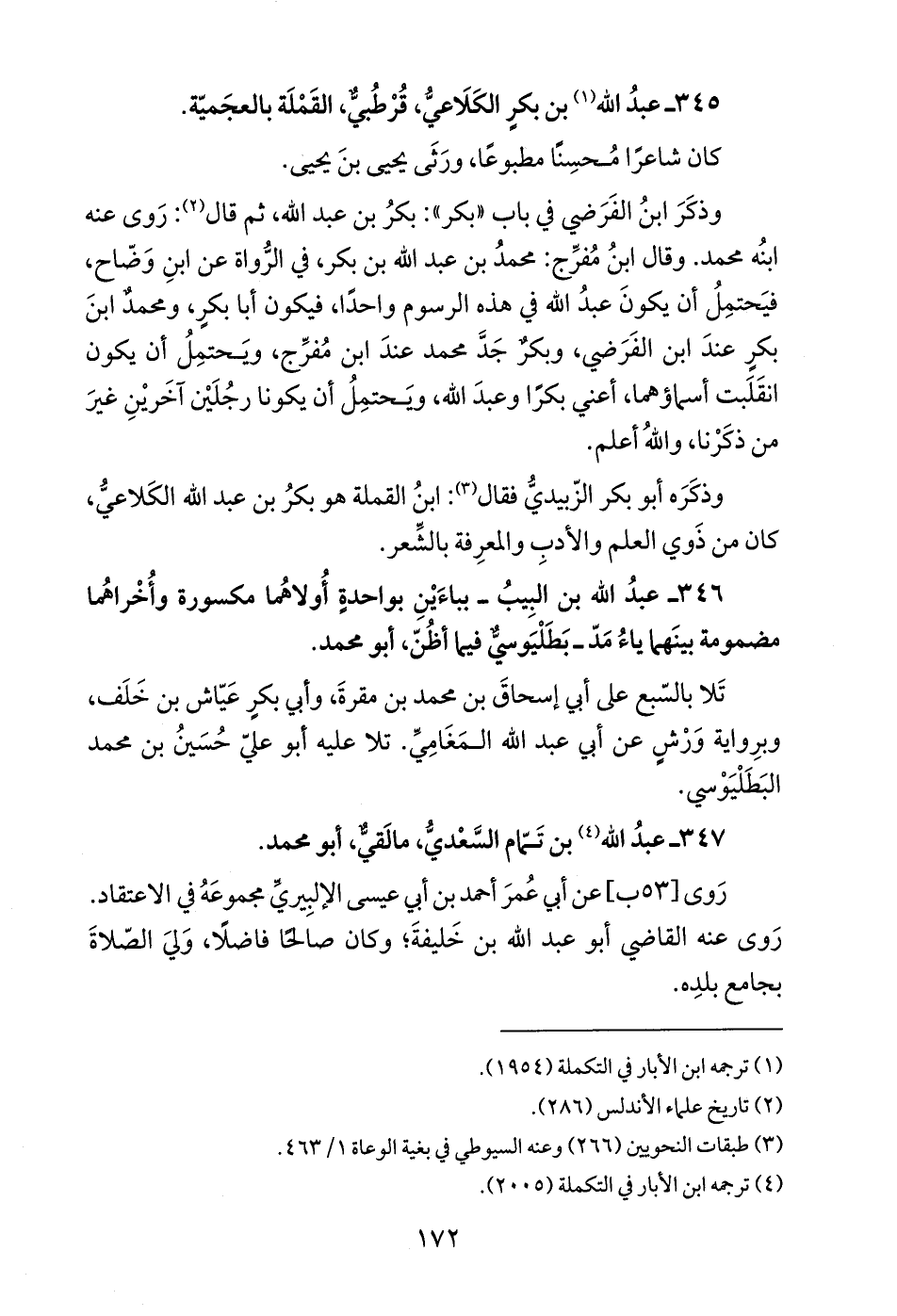 345 - عبدُ الله (¬1) بن بكرٍ الكَلَاعيُّ، قُرْطُبيٌّ، القَمْلَة بالعجَميّة.
