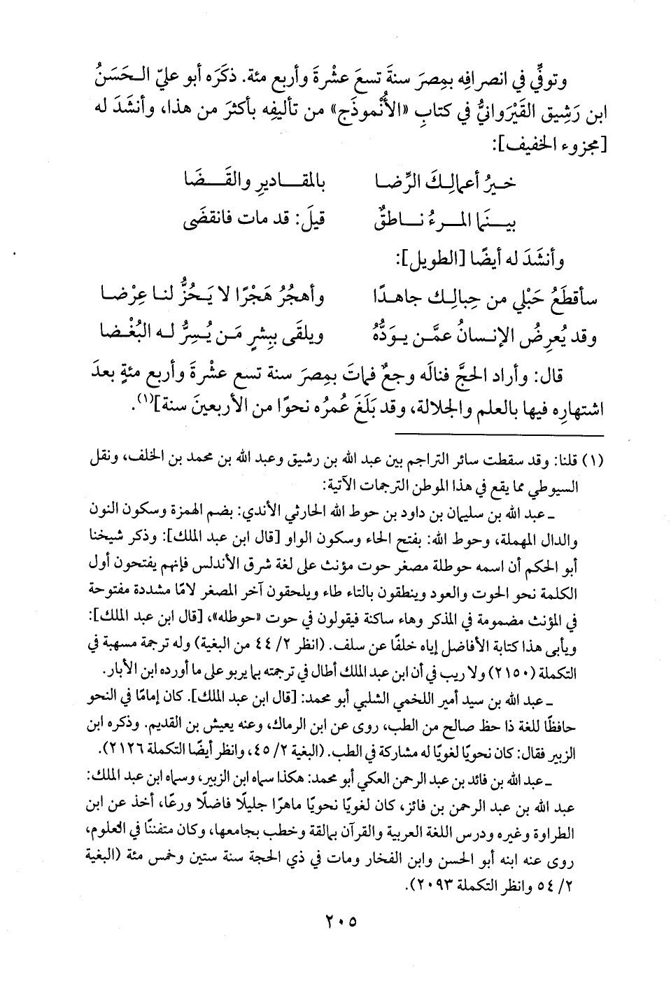 (¬1) قلنا: وقد سقطت سائر التراجم بين عبد الله بن رشيق وعبد الله بن محمد بن الخلف، ونقل السيوطي مما يقع في هذا الموطن الترجمات الآتية: