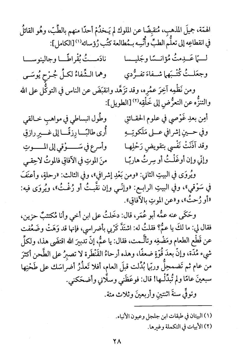 (¬1) البيتان في طبقات ابن جلجل وعيون الأنباء.
