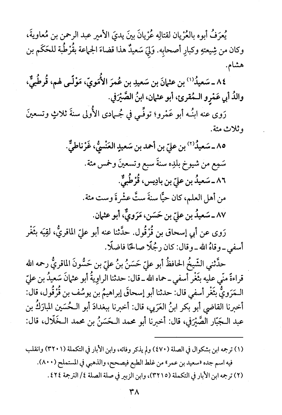 84 - سَعيدُ (¬1) بن عثمانَ بن سَعيدِ بن عُمرَ الأمويّ، مَوْلًى لهم، قُرطُبيٌّ، والدُ أبي عَمْرٍو المُقرئ، أبو عثمان، ابنُ الصَّيْرَفي.