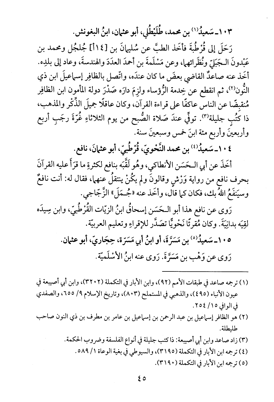 104 - سعيدُ (¬4) بن محمد النَّحْويّ، قُرْطُبيّ، أبو عثمانَ، نافع.