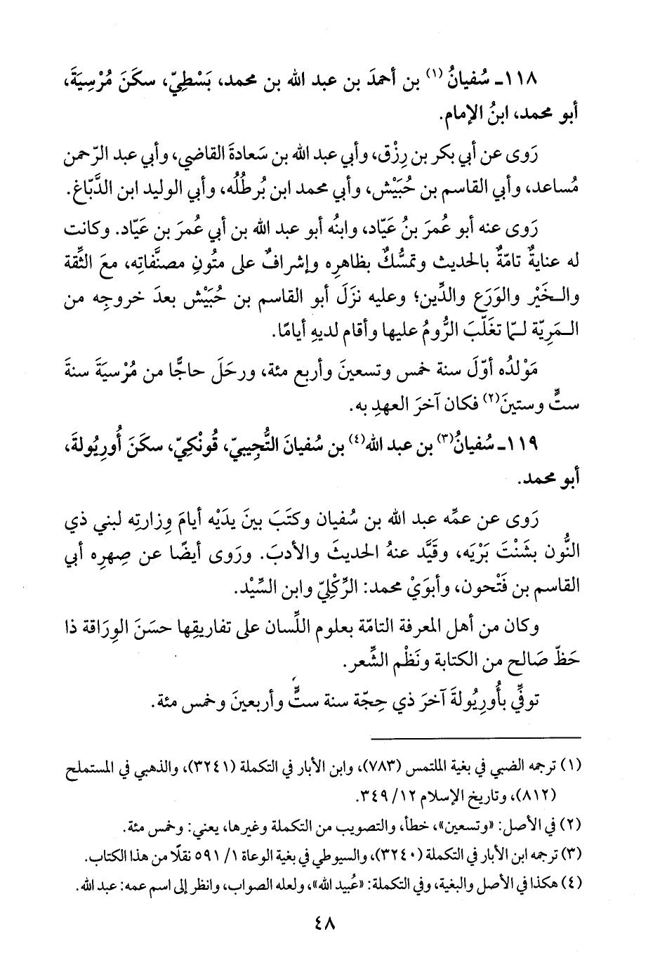 118 - سُفيانُ (¬1) بن أحمدَ بن عبد الله بن محمد، بَسْطِيّ، سكَنَ مُرْسِيَةَ، أبو محمد، ابنُ الإِمام.