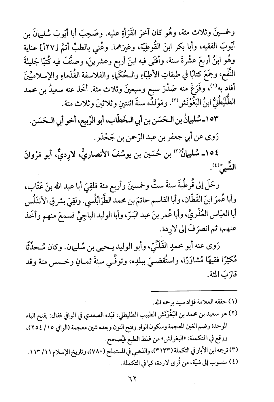 (¬2) هو سعيد بن محمد بن البَغُوْنَش الطبيب الطليطلي، قيّده الصفدي في الوافي فقال: بفتح الباء الموحدة وضم الغين المعجمة وسكون الواو وفتح النون وبعده شين معجمة (الوافي 15/ 254)، ووقع في التكملة: "البغولش" من غلط الطبع فيُصحح.