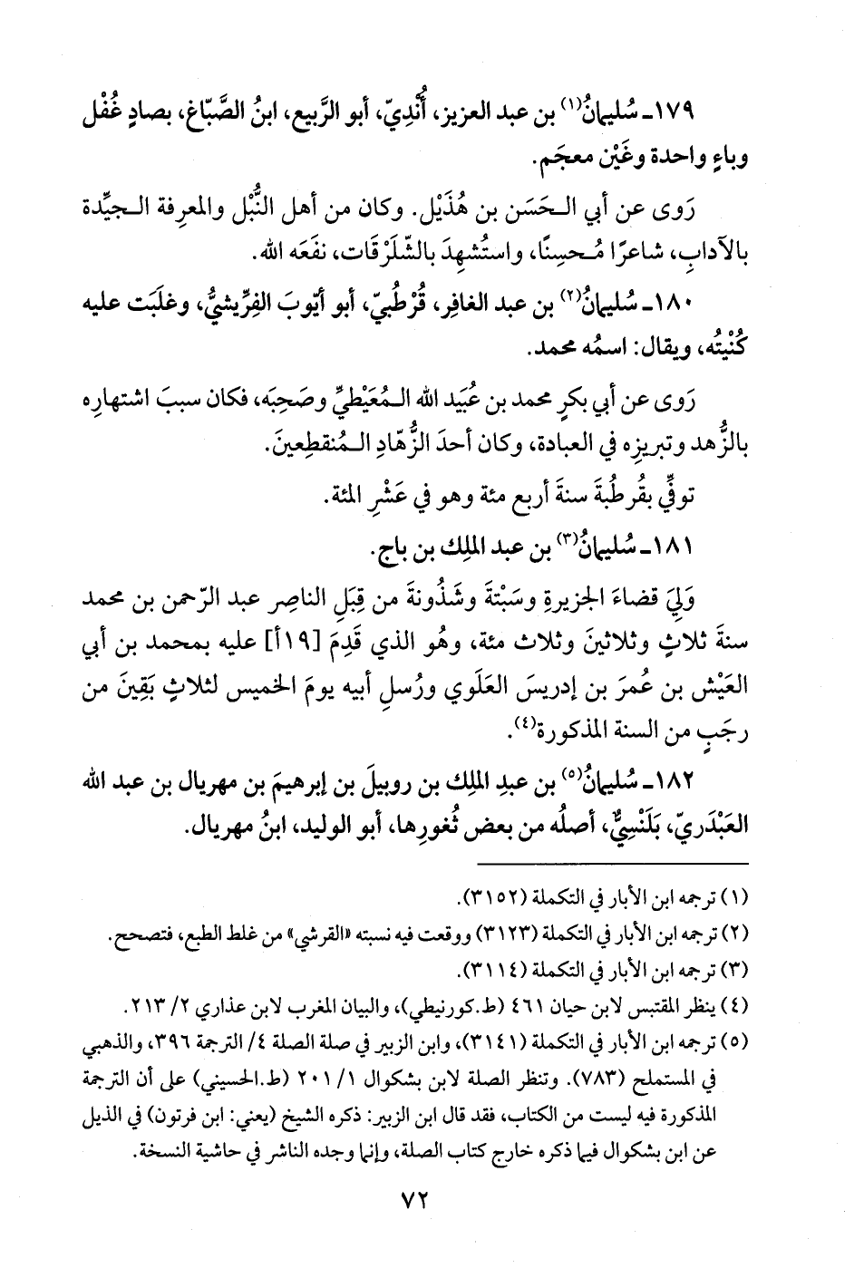 182 - سُليمانُ (¬5) بن عبدِ الملِك بن روبيلَ بن إبرهيمَ بن مهريال بن عبد الله العَبْدَريّ، بَلَنْسِيٌّ، أصلُه من بعض ثُغورِها، أبو الوليد، ابنُ مهريال.