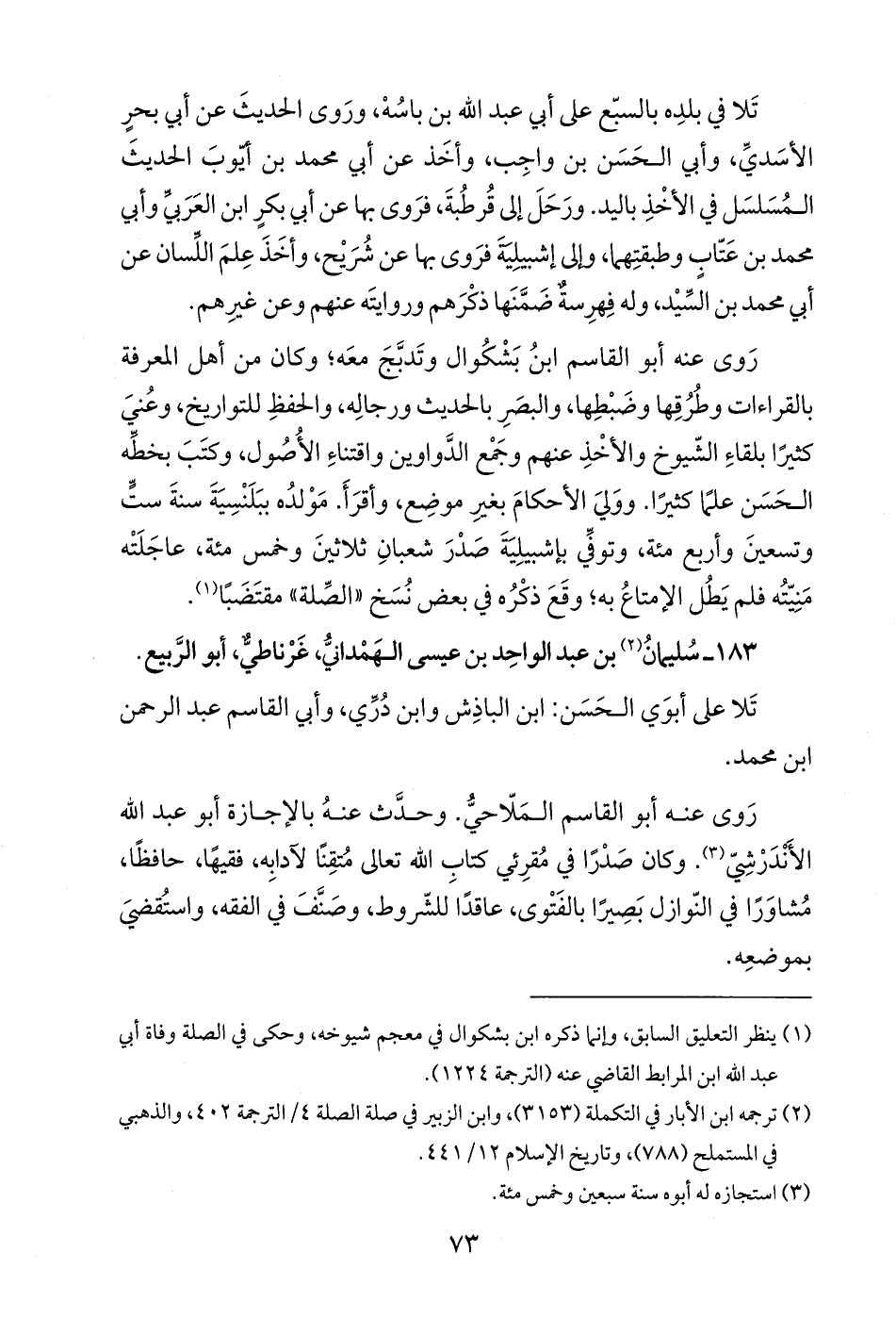 183 - سُليمانُ (¬2) بن عبد الواحِد بن عيسى الهَمْدانيُّ، غَرْناطيٌّ، أبو الرَّبيع.