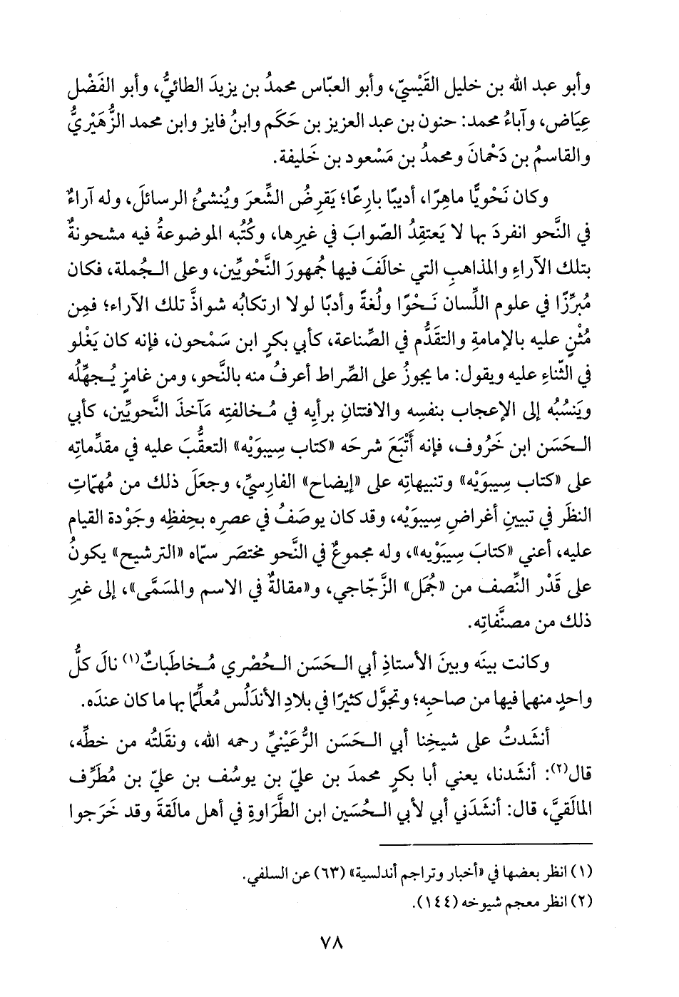 وأبو عبد الله بن خليل القَيْسيّ، وأبو العبّاس محمدُ بن يزيدَ الطائيُّ، وأبو الفَضْل عِيَاض، وآباءُ محمد: حنون بن عبد العزيز بن حَكَم وابنُ فايز وابن محمد الزُّهَيْريُّ والقاسمُ بن دَحْمانَ ومحمدُ بن مَسْعود بن خَليفة.