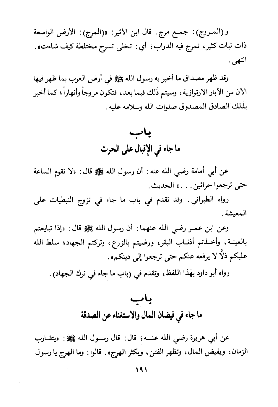 وقد ظهر مصداق ما أخبر به رسول الله صلى الله عليه وسلم في أرض العرب بما ظهر فيها الآن من الآبار الارتوازية، وسيتم ذلك فيما بعد، فتكون مروجًا وأنهارًا؛ كما أخبر بذلك الصادق المصدوق صلوات الله وسلامه عليه.