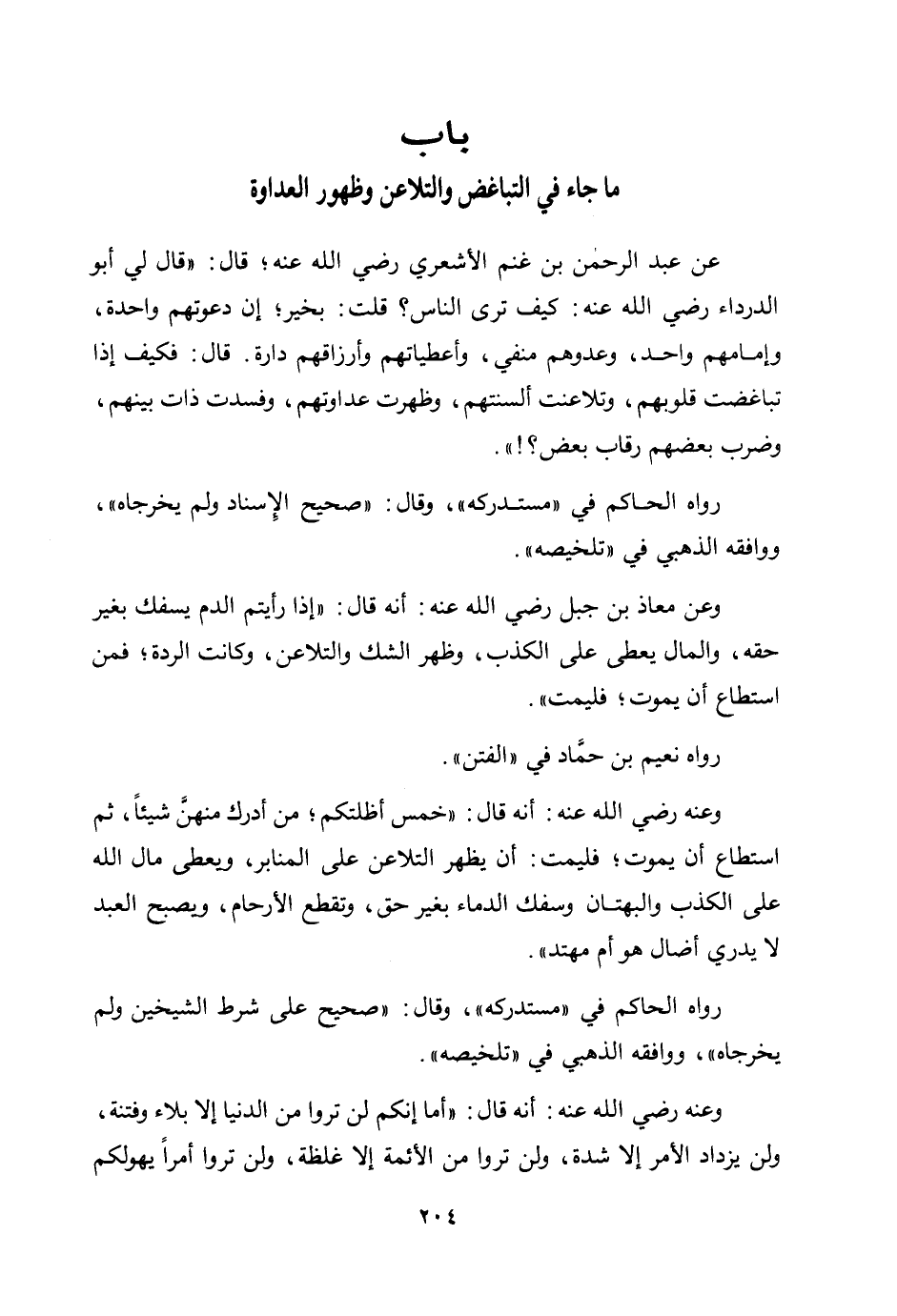 ما جاء في التباغض والتلاعن وظهور العداوة