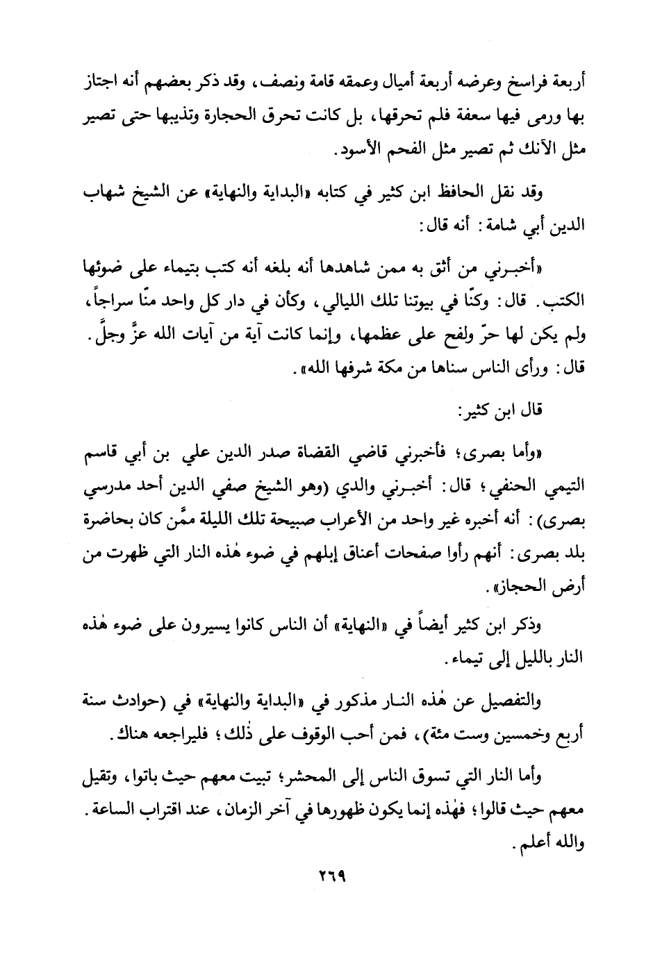 والتفصيل عن هذه النار مذكور في "البداية والنهاية" في (حوادث سنة أربع وخمسين وستمائة) ، فمن أحب الوقوف على ذلك؛ فليراجعه هناك.