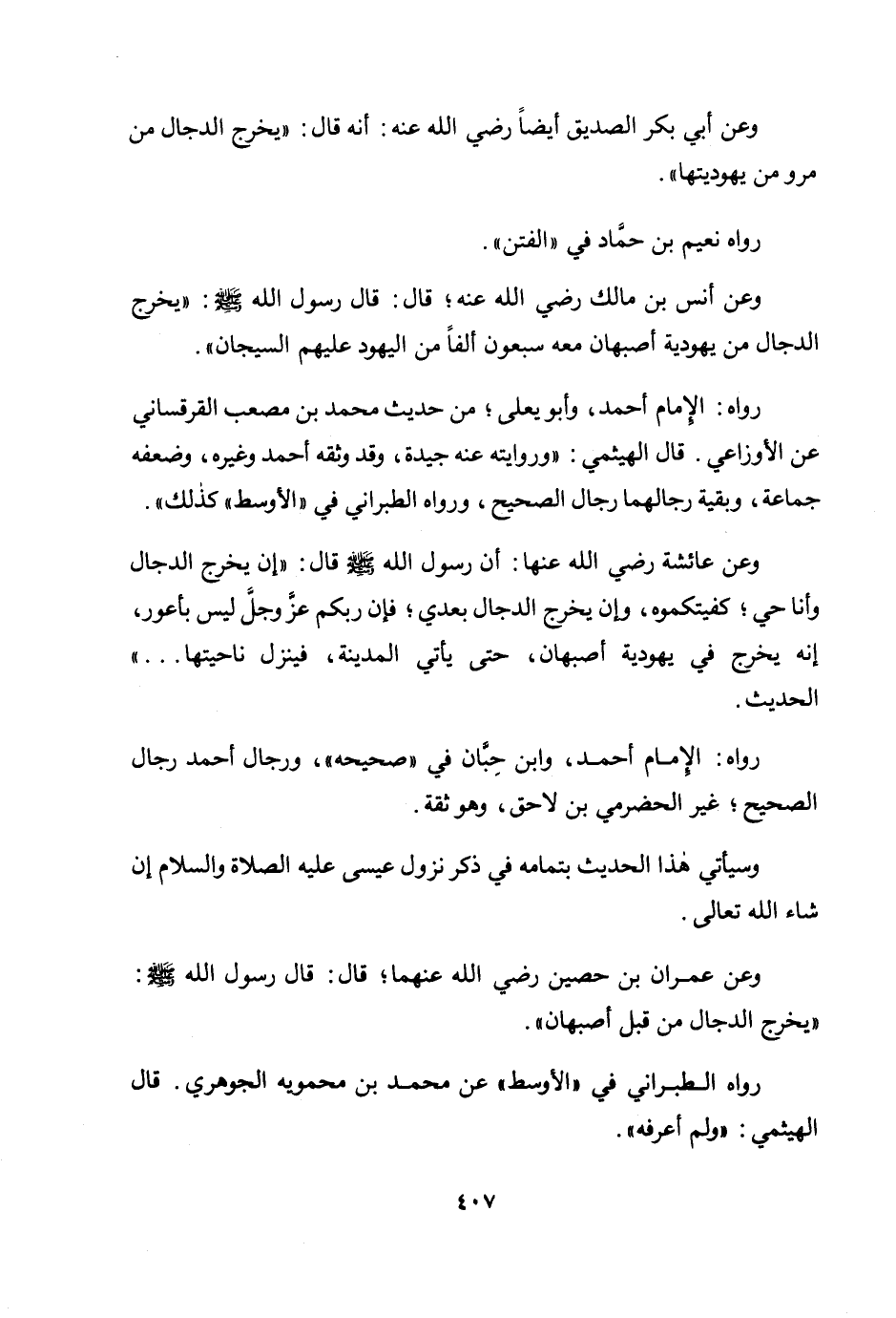 وعن عمران بن حصين رضي الله عنهما؛ قال: قال رسول الله صلى الله عليه وسلم: «يخرج الدجال من قبل أصبهان» .