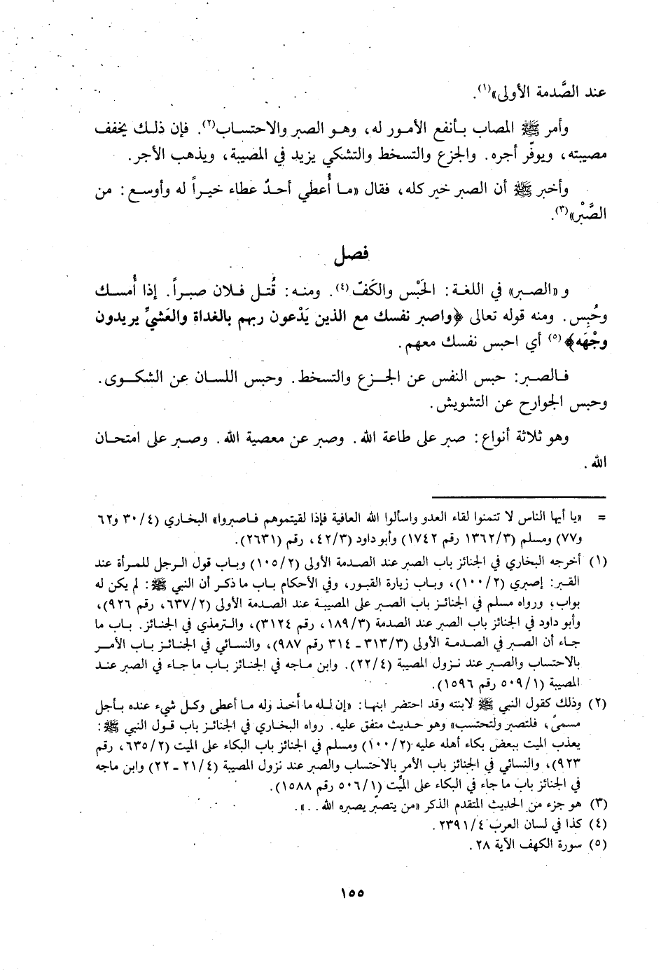 [فَصْلٌ تَعْرِيفُ الصَّبْرِ]