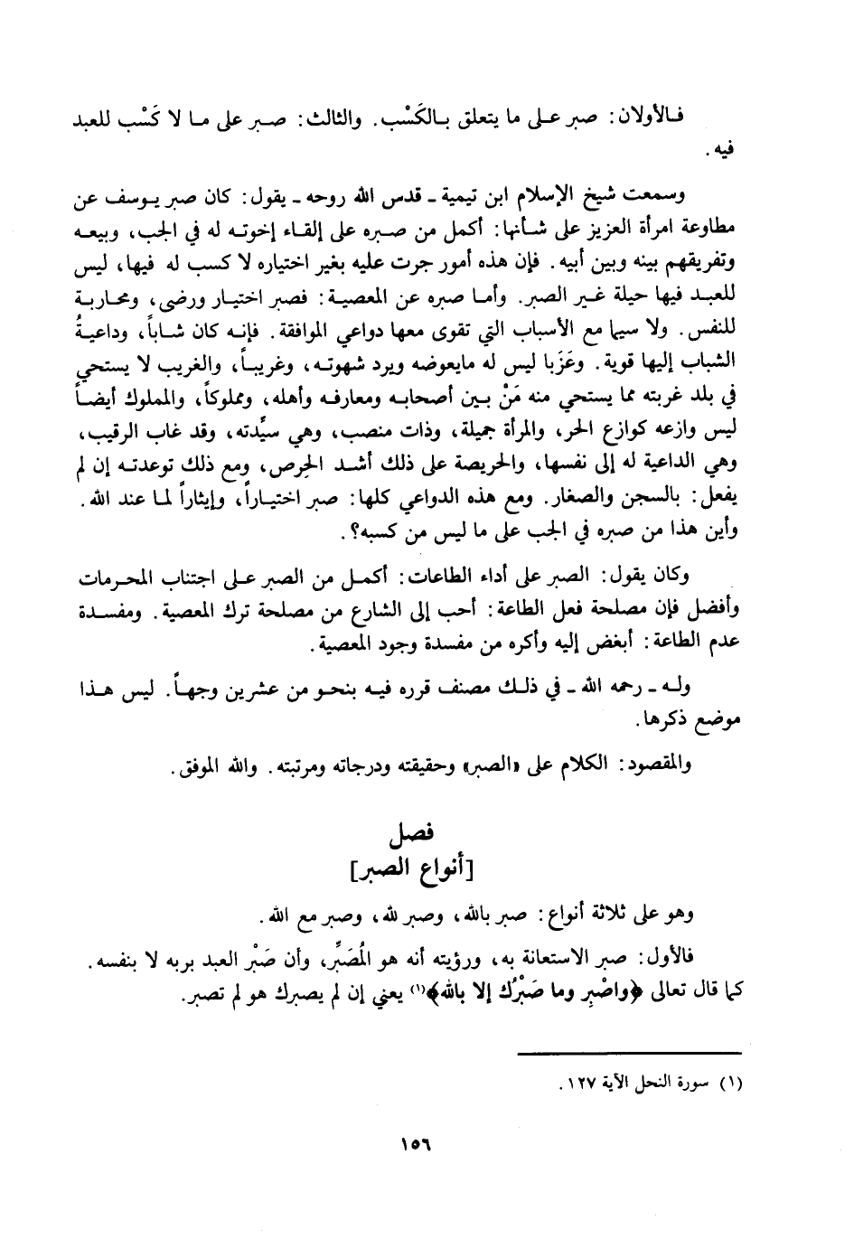 فَصْلٌ أَنْوَاعُ الصَّبْرِ