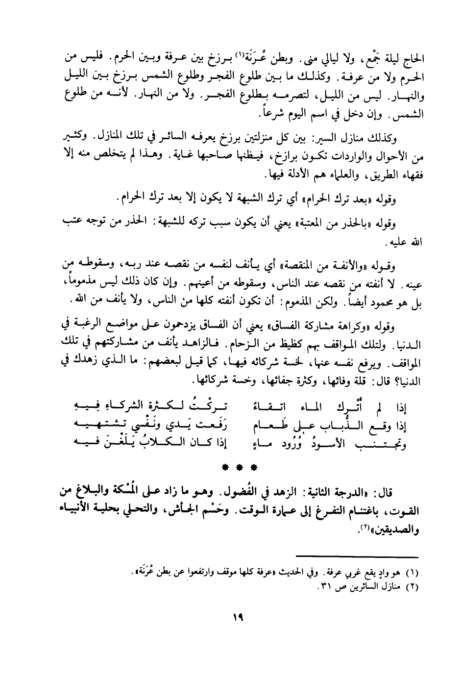 وَكَذَلِكَ مَنَازِلُ السَّيْرِ بَيْنَ كُلِّ مَنْزِلَتَيْنِ بَرْزَخٌ يَعْرِفُهُ السَّائِرُ فِي تِلْكَ الْمَنَازِلِ. وَكَثِيرٌ مِنَ الْأَحْوَالِ وَالْوَارِدَاتِ تَكُونُ بَرَازِخَ، فَيَظُنُّهَا صَاحِبُهَا غَايَةً. وَهَذَا لَمْ يَتَخَلَّصْ مِنْهُ إِلَّا فُقَهَاءُ الطَّرِيقِ، وَالْعُلَمَاءُ هُمُ الْأَدِلَّةُ فِيهَا.