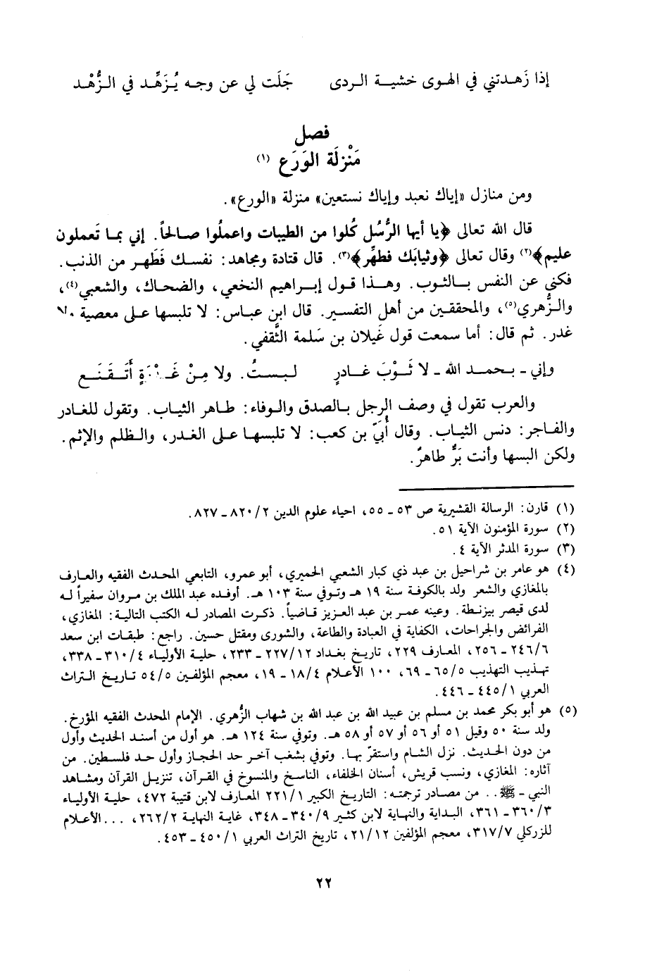 وَمِنْ مَنَازِلِ " {إِيَّاكَ نَعْبُدُ وَإِيَّاكَ نَسْتَعِينُ} [الفاتحة: 5] " مَنْزِلَةُ الْوَرَعِ.