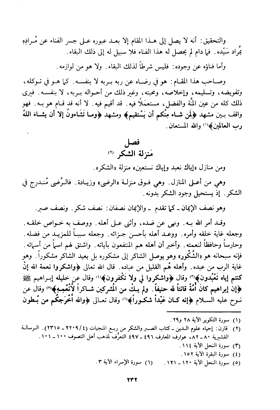 وَمِنْ مَنَازِلِ {إِيَّاكَ نَعْبُدُ وَإِيَّاكَ نَسْتَعِينُ} [الفاتحة: 5] مَنْزِلَةُ الشُّكْرِ
