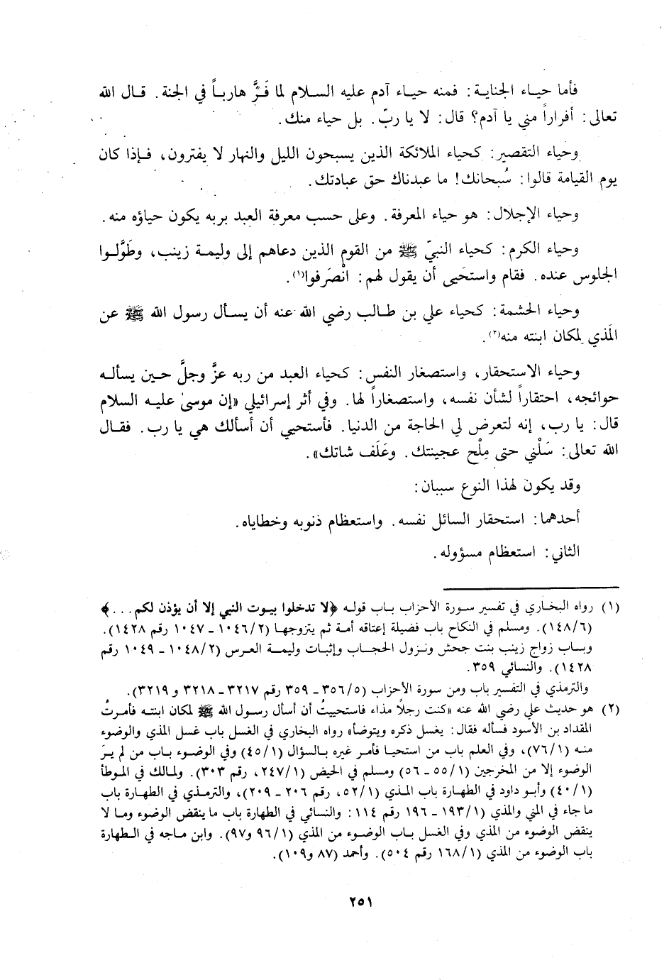 وَحَيَاءُ الْحِشْمَةِ: كَحَيَاءِ عَلِيِّ بْنِ أَبِي طَالِبٍ رَضِيَ اللَّهُ عَنْهُ أَنْ يَسْأَلَ رَسُولَ اللَّهِ صَلَّى اللَّهُ عَلَيْهِ وَسَلَّمَ عَنِ الْمَذْيِ لِمَكَانِ ابْنَتِهِ مِنْهُ.