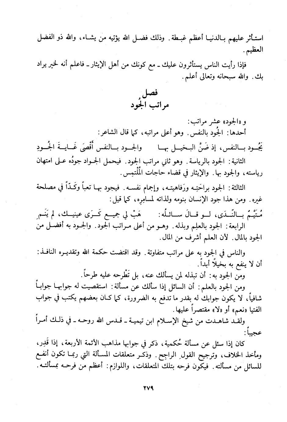 [فَصْلٌ مَرَاتِبُ الْجُودِ]