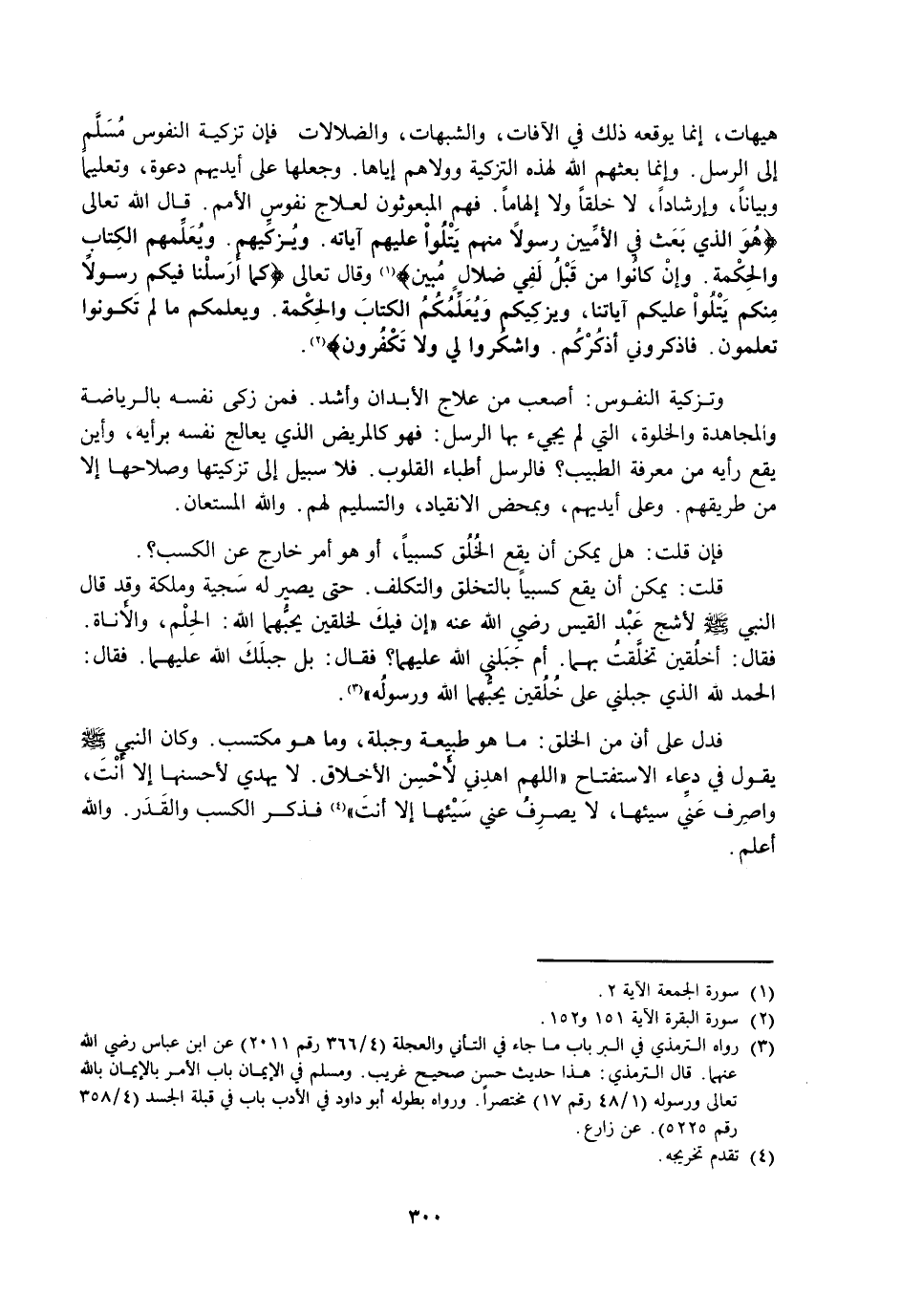وَتَزْكِيَةُ النُّفُوسِ: أَصْعَبُ مِنْ عِلَاجِ الْأَبْدَانِ وَأَشَدُّ. فَمَنْ زَكَّى نَفْسَهُ بِالرِّيَاضَةِ وَالْمُجَاهَدَةِ وَالْخَلْوَةِ، الَّتِي لَمْ يَجِئْ بِهَا الرُّسُلُ: فَهُوَ كَالْمَرِيضِ الَّذِي عَالَجَ نَفْسَهُ بِرَأْيِهِ، وَأَيْنَ يَقَعُ رَأْيُهُ مِنْ مَعْرِفَةِ الطَّبِيبِ؟ فَالرُّسُلُ أَطِبَّاءُ الْقُلُوبِ. فَلَا سَبِيلَ إِلَى تَزْكِيَتِهَا وَصَلَاحِهَا إِلَّا مِنْ طَرِيقِهِمْ. وَعَلَى أَيْدِيهِمْ، وَبِمَحْضِ الِانْقِيَادِ، وَالتَّسْلِيمِ لَهُمْ. وَاللَّهُ الْمُسْتَعَانُ.
