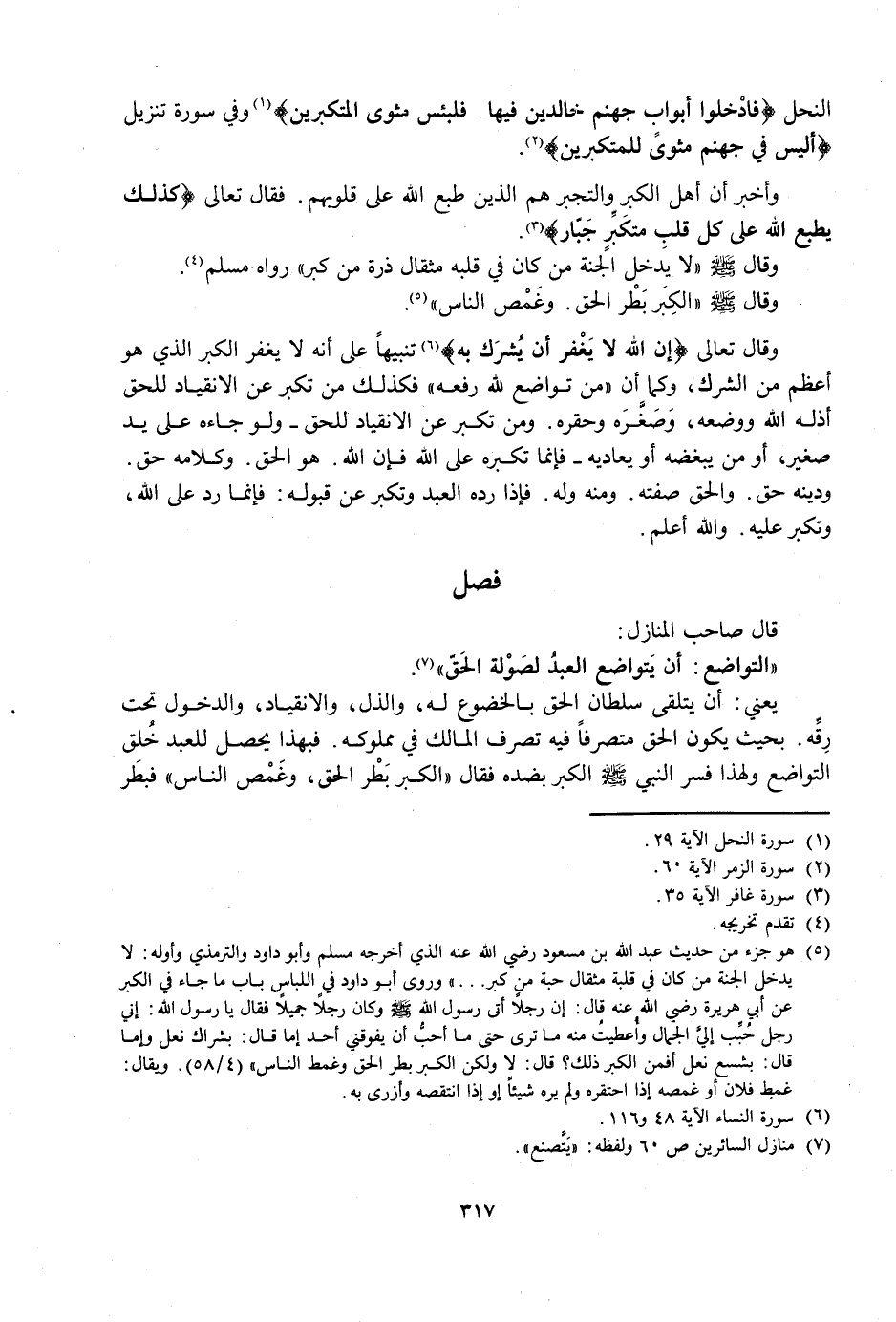 وَقَالَ صَلَّى اللَّهُ عَلَيْهِ وَسَلَّمَ «الْكِبْرُ بَطَرُ الْحَقِّ. وَغَمْطُ النَّاسِ» .