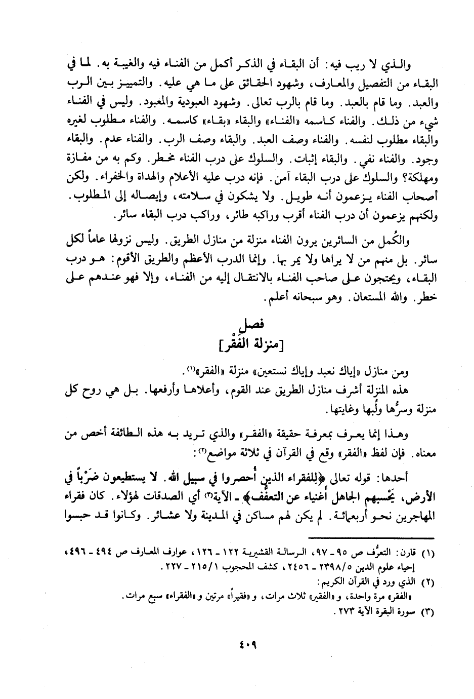 وَهَذَا إِنَّمَا يُعْرَفُ بِمَعْرِفَةِ حَقِيقَةِ الْفَقْرِ. وَالَّذِي تُرِيدُ بِهِ هَذِهِ الطَّائِفَةُ أَخَصَّ مِنْ مَعْنَاهُ الْأَصْلِيِّ. فَإِنَّ لَفْظَ الْفَقْرِ وَقَعَ فِي الْقُرْآنِ فِي ثَلَاثَةِ مَوَاضِعَ.
