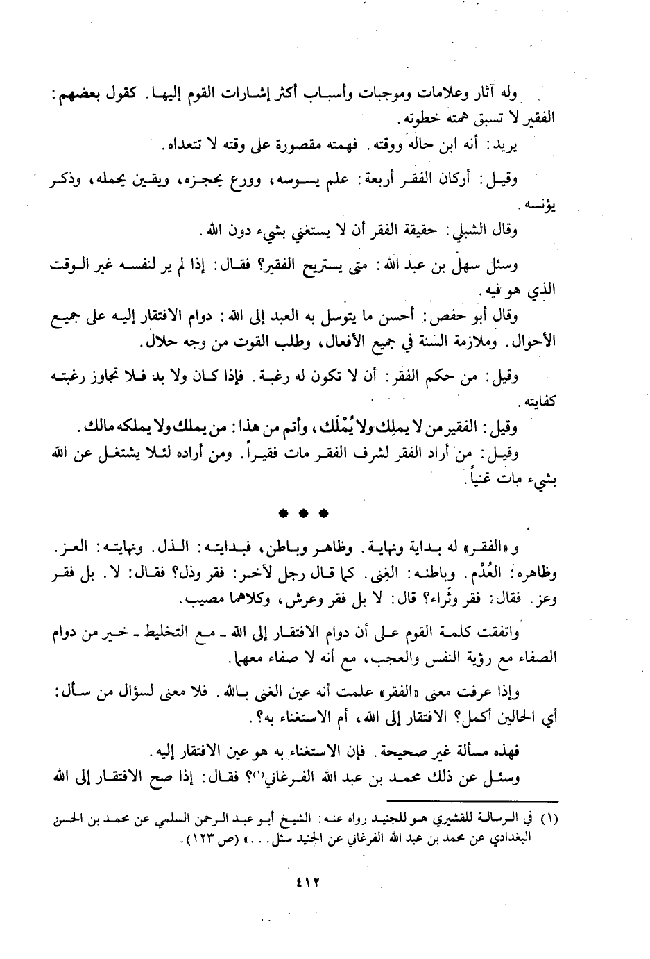 وَقَالَ الشِّبْلِيُّ: حَقِيقَةُ الْفَقْرِ أَنْ لَا يَسْتَغْنِيَ بِشَيْءٍ دُونَ اللَّهِ.