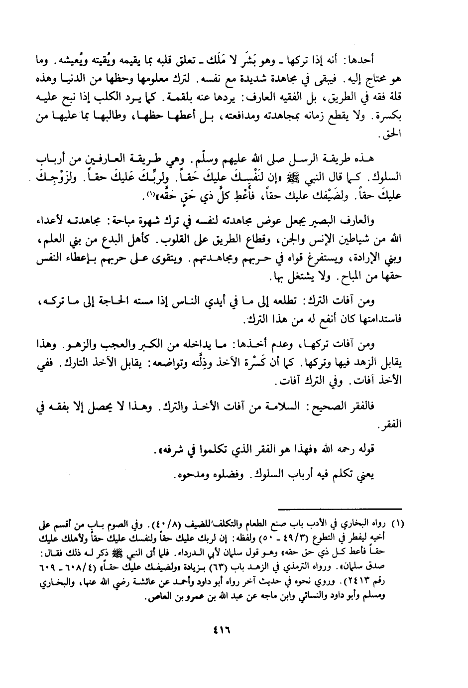 قَوْلُهُ رَحِمَهُ اللَّهُ: فَهَذَا هُوَ الْفَقْرُ الَّذِي تَكَلَّمُوا فِي شَرَفِهِ.