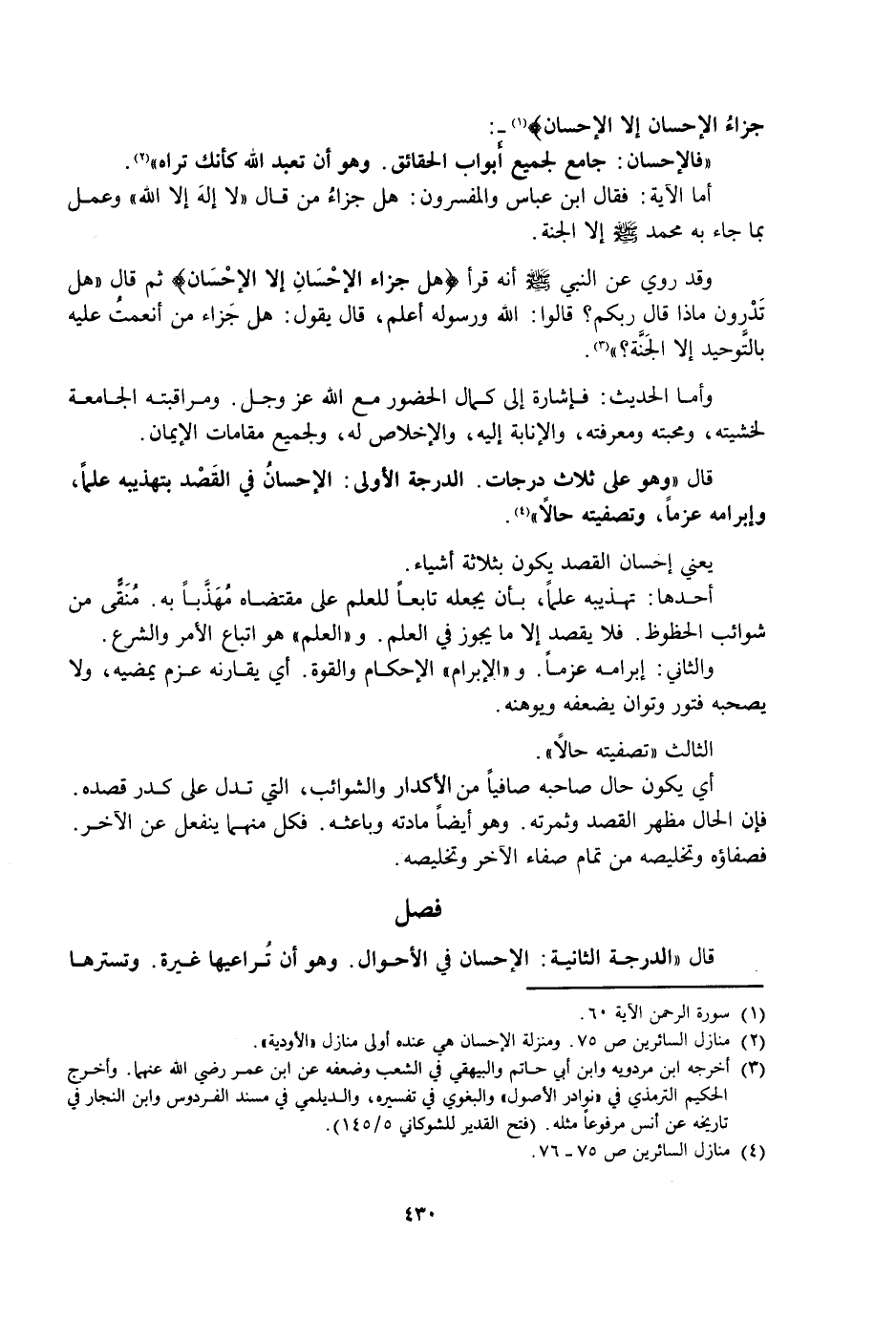 [فَصْلٌ الدَّرَجَةُ الثَّانِيَةُ الْإِحْسَانُ فِي الْأَحْوَالِ]
