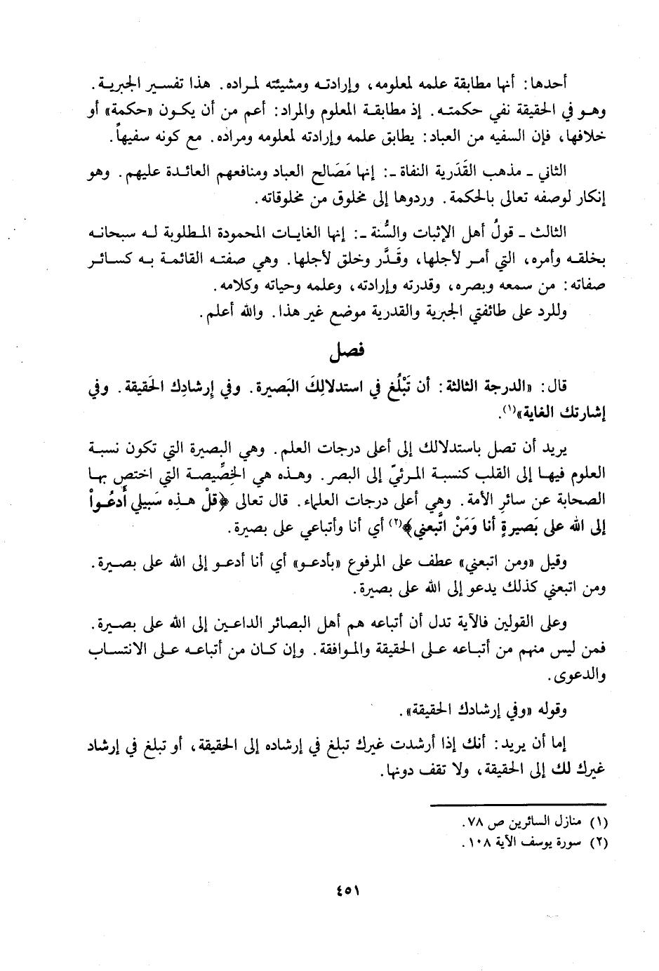 يُرِيدُ أَنْ تَصِلَ بِاسْتِدْلَالِكَ إِلَى أَعْلَى دَرَجَاتِ الْعِلْمِ. وَهِيَ الْبَصِيرَةُ الَّتِي تَكُونُ نِسْبَةُ الْعُلُومِ فِيهَا إِلَى الْقَلْبِ كَنِسْبَةِ الْمَرْئِيِّ إِلَى الْبَصَرِ. وَهَذِهِ هِيَ الْخِصِّيصَةُ الَّتِي اخْتُصَّ بِهَا الصَّحَابَةُ عَنْ سَائِرِ الْأُمَّةِ. وَهِيَ أَعْلَى دَرَجَاتِ الْعُلَمَاءِ. قَالَ تَعَالَى: {قُلْ هَذِهِ سَبِيلِي أَدْعُو إِلَى اللَّهِ عَلَى بَصِيرَةٍ أَنَا وَمَنِ اتَّبَعَنِي} [يوسف: 108] أَيْ أَنَا وَأَتْبَاعِي عَلَى بَصِيرَةٍ.