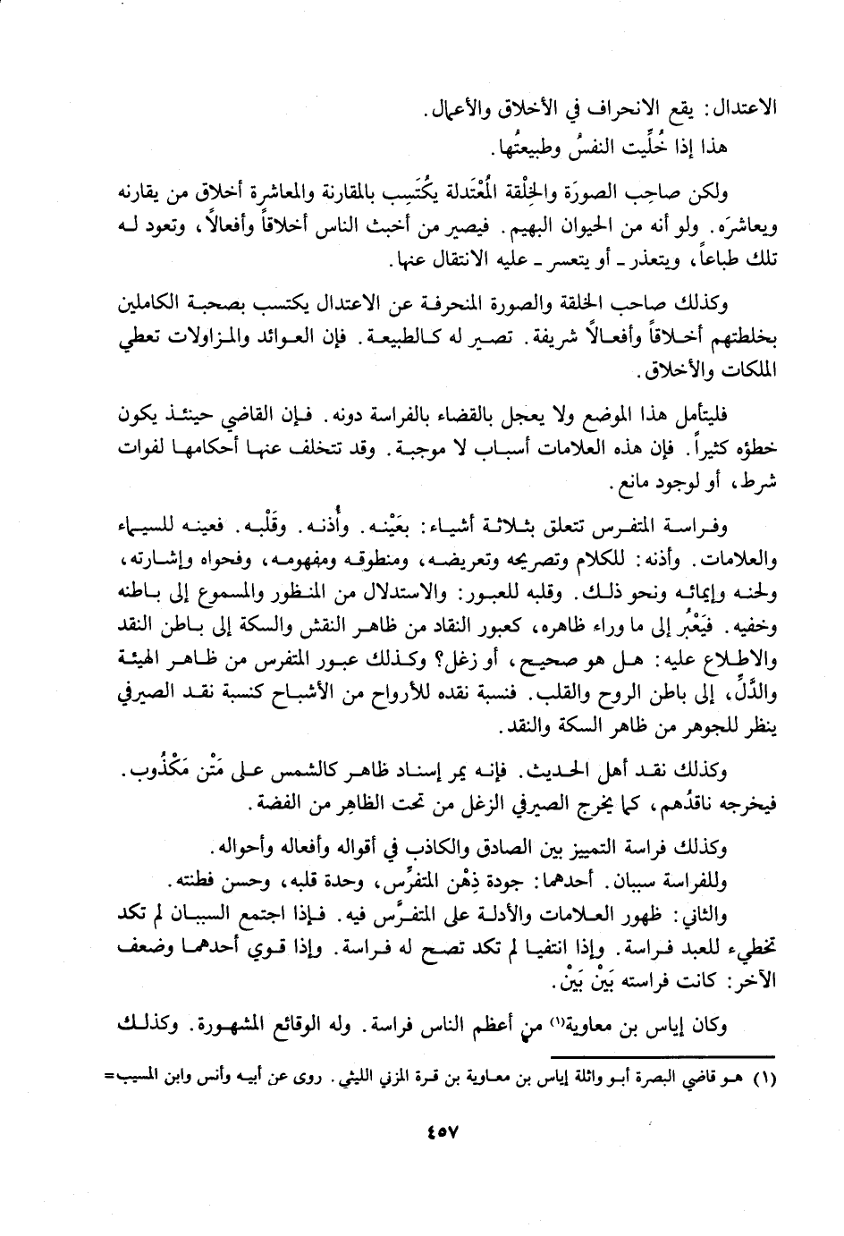 وَكَذَلِكَ صَاحَبُ الْخِلْقَةِ وَالصُّورَةِ الْمُنْحَرِفَةِ عَنْ الِاعْتِدَالِ يَكْتَسِبُ بِصُحْبَةِ الْكَامِلِينَ بِخُلْطَتِهِمْ أَخْلَاقًا وَأَفْعَالًا شَرِيفَةً. تَصِيرُ لَهُ كَالطَّبِيعَةِ. فَإِنَّ الْعَوَائِدَ وَالْمُزَاوَلَاتِ تُعْطِي الْمَلَكَاتِ وَالْأَخْلَاقَ.