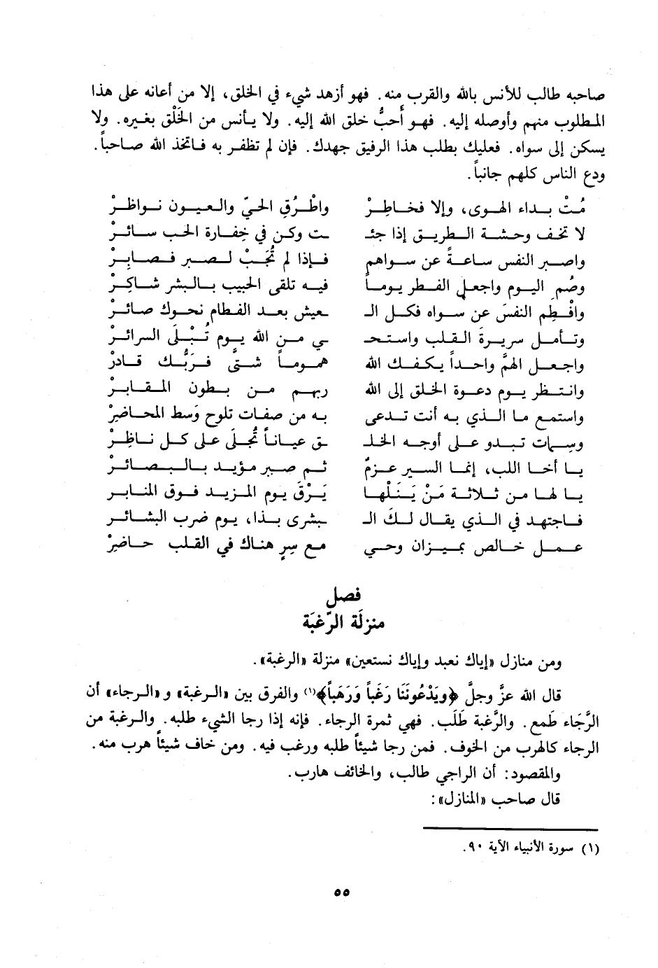 وَمِنْ مَنَازِلِ: {إِيَّاكَ نَعْبُدُ وَإِيَّاكَ نَسْتَعِينُ} [الفاتحة: 5] مَنْزِلَةُ الرَّغْبَةِ.