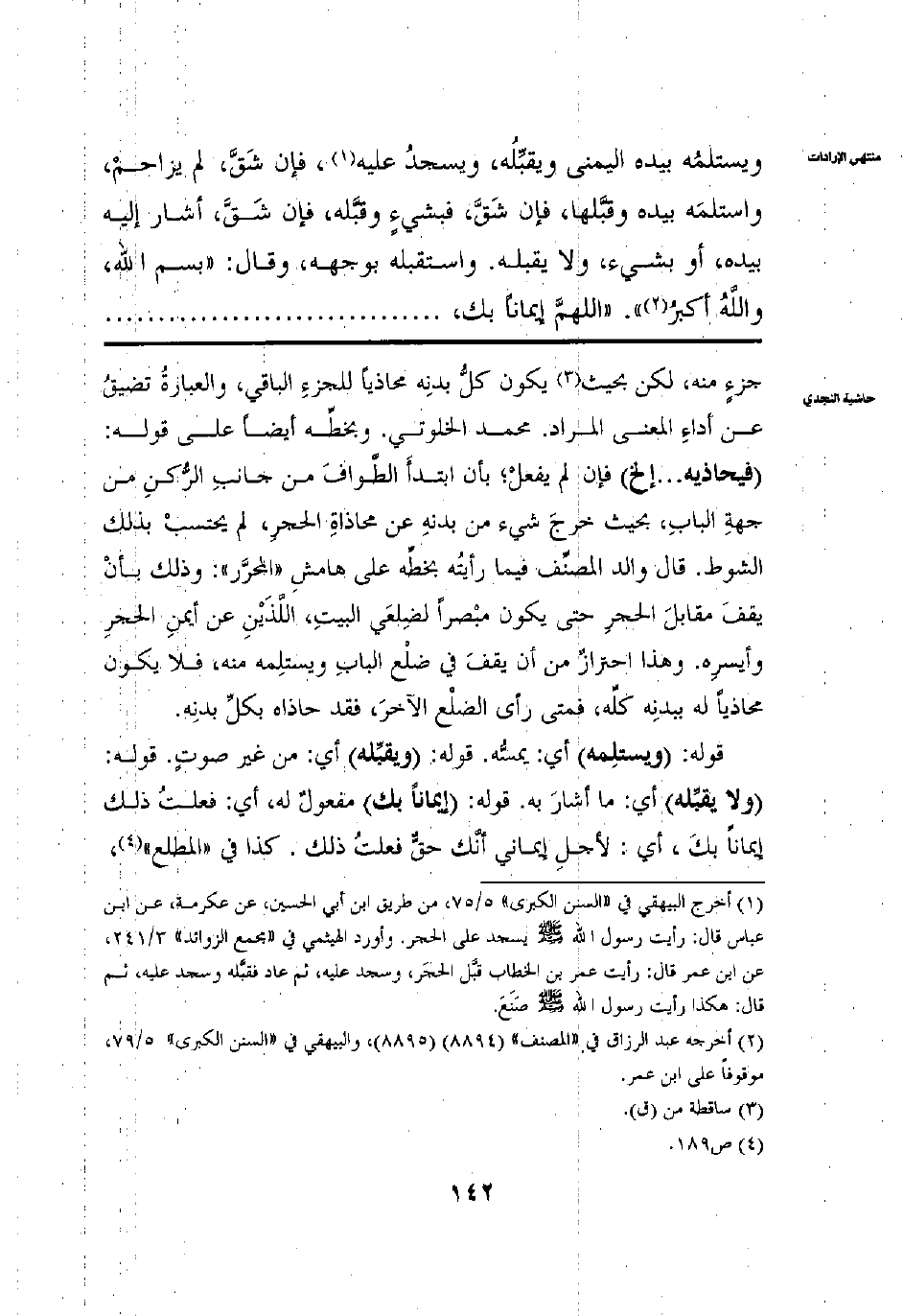 وَيَسْتَلِمُهُ بِيَدِهِ الْيُمْنَى وَيُقَبِّلُهُ وَيَسْجُدُ عَلَيْهِ لَمْ يُزَاحِمْ وَاسْتَلَمَهُ بِيَدِهِ وَقَبَّلَهَا فبِشَيْءٍ وَيُقَبِّلُهُ أَشَارَ إلَيْهِ بِيَدِهِ الْيُمْنَى أَوْ بِشَيْءٍ وَلَا يُقَبِّلُهُ وَاسْتَقْبَلَهُ بِوَجْهِهِ وَقَالَ: بِسْمِ اللَّهِ وَاَللَّهُ أَكْبَرُ اللَّهُمَّ إيمَانًا بِكَ،
