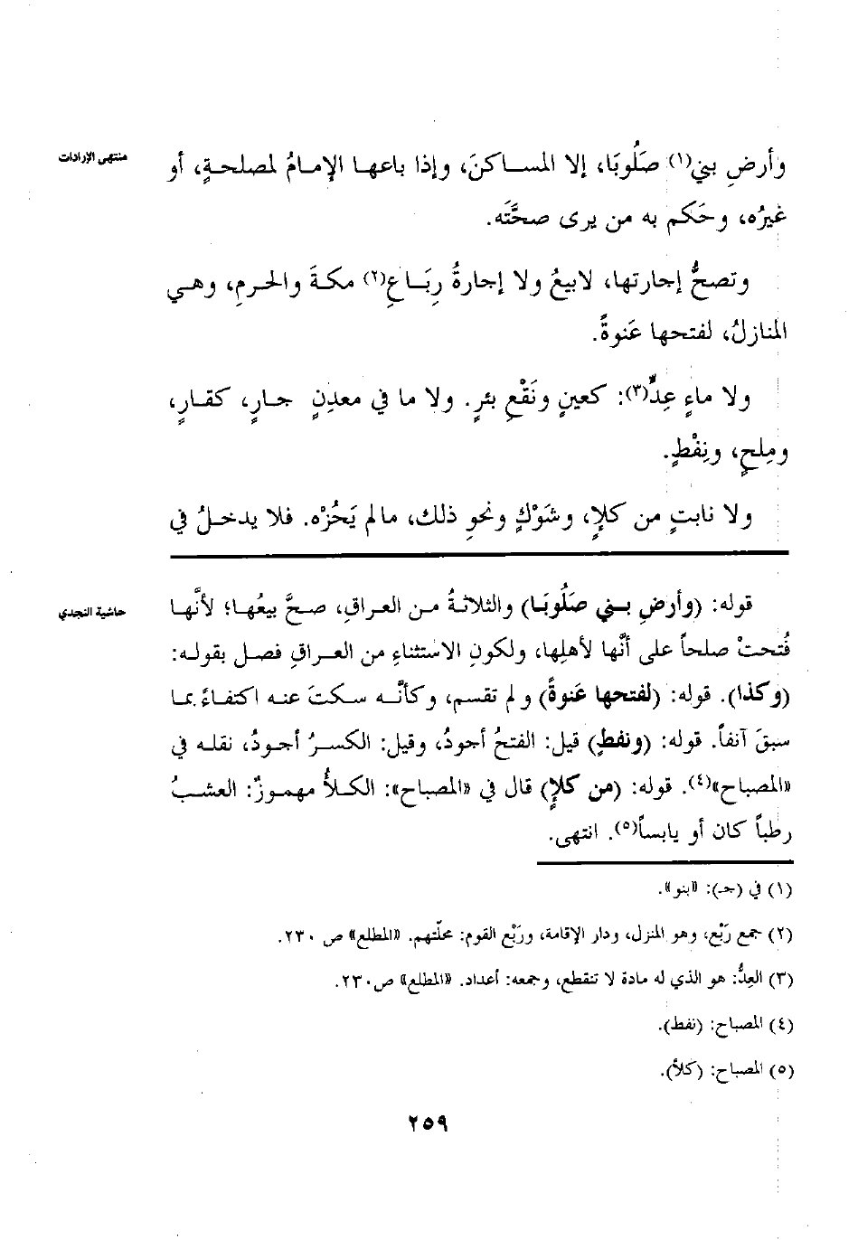 وأَرْضِ بَنِي صَلُوبَا إلَّا الْمَسَاكِنَ وإذَا بَاعَهَا الْإِمَامُ لِمَصْلَحَةٍ أَوْ غَيْرُهُ وَحَكَمَ بِهِ مَنْ يَرَى صِحَّتَهُ وَتَصِحُّ إجَارَتُهَا لَا بَيْعُ وَلَا إجَارَةُ رِبَاعِ مَكَّةَ والْحَرَمِ، وَهِيَ الْمَنَازِلُ لِفَتْحِهَا عَنْوَةً وَلَا مَاءٍ عِدٍّ كَعَيْنٍ وَنَقْعِ بِئْرٍ وَلَا مَا فِي مَعْدِنٍ جَارٍ كَقَارٍ وَمِلْحٍ وَنِفْطٍ وَلَا نَابِتٍ مِنْ كَلَإٍ وَشَوْكٍ وَنَحْوَ ذَلِكَ مَا لَمْ يَحُزْهُ فَلَا يَدْخُلُ فِي