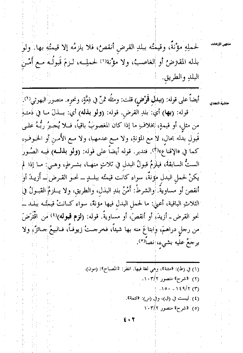 لِحَمْلِهِ مُؤْنَةٌ وَقِيمَتُهُ بِبَلَدِ الْقَرْضِ أَنْقَصُ فَلَا يَلْزَمُهُ إلَّا قِيمَتُهُ بِهَا وَلَوْ بَذَلَهُ الْمُقْتَرِضُ أَوْ الْغَاصِبُ وَلَا مُؤْنَةَ لِحَمْلِهِ لَزِمَ قَبُولُهُ مَعَ أَمْنِ الْبَلَدِ وَالطَّرِيقِ