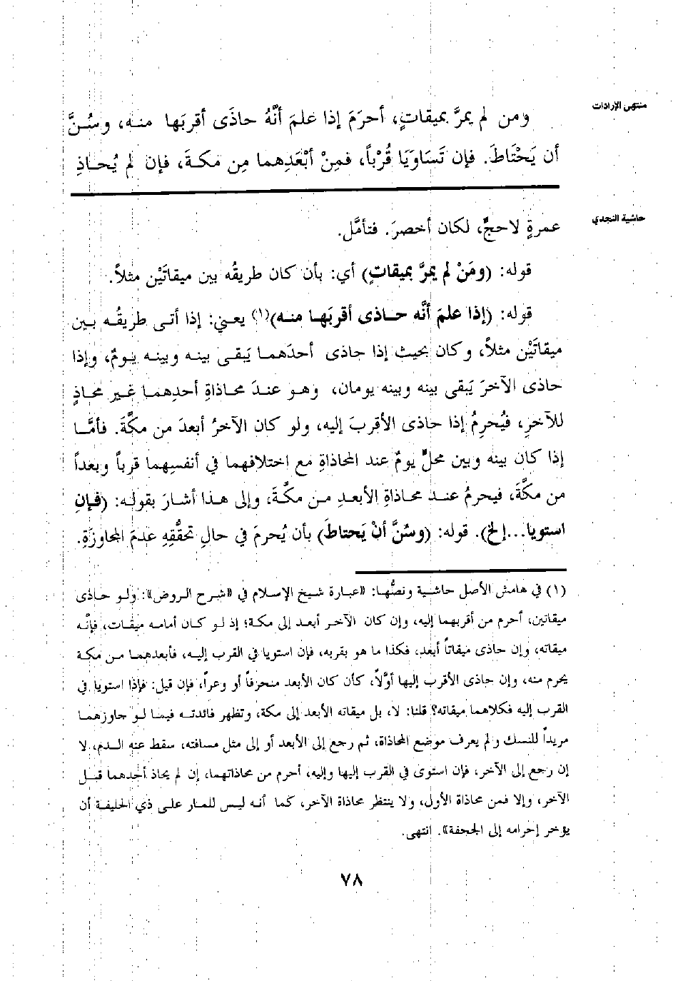 وَمَنْ لَمْ يَمُرَّ بِمِيقَاتٍ أَحْرَمَ إذَا عَلِمَ أَنَّهُ حَاذَى أَقْرَبَهَا مِنْهُ وَسُنَّ أَنْ يَحْتَاطَ فإن تَسَاوَيَا قُرْبًا فمِنْ أَبْعَدِهِمَا من مكة فإن لم يحاذ