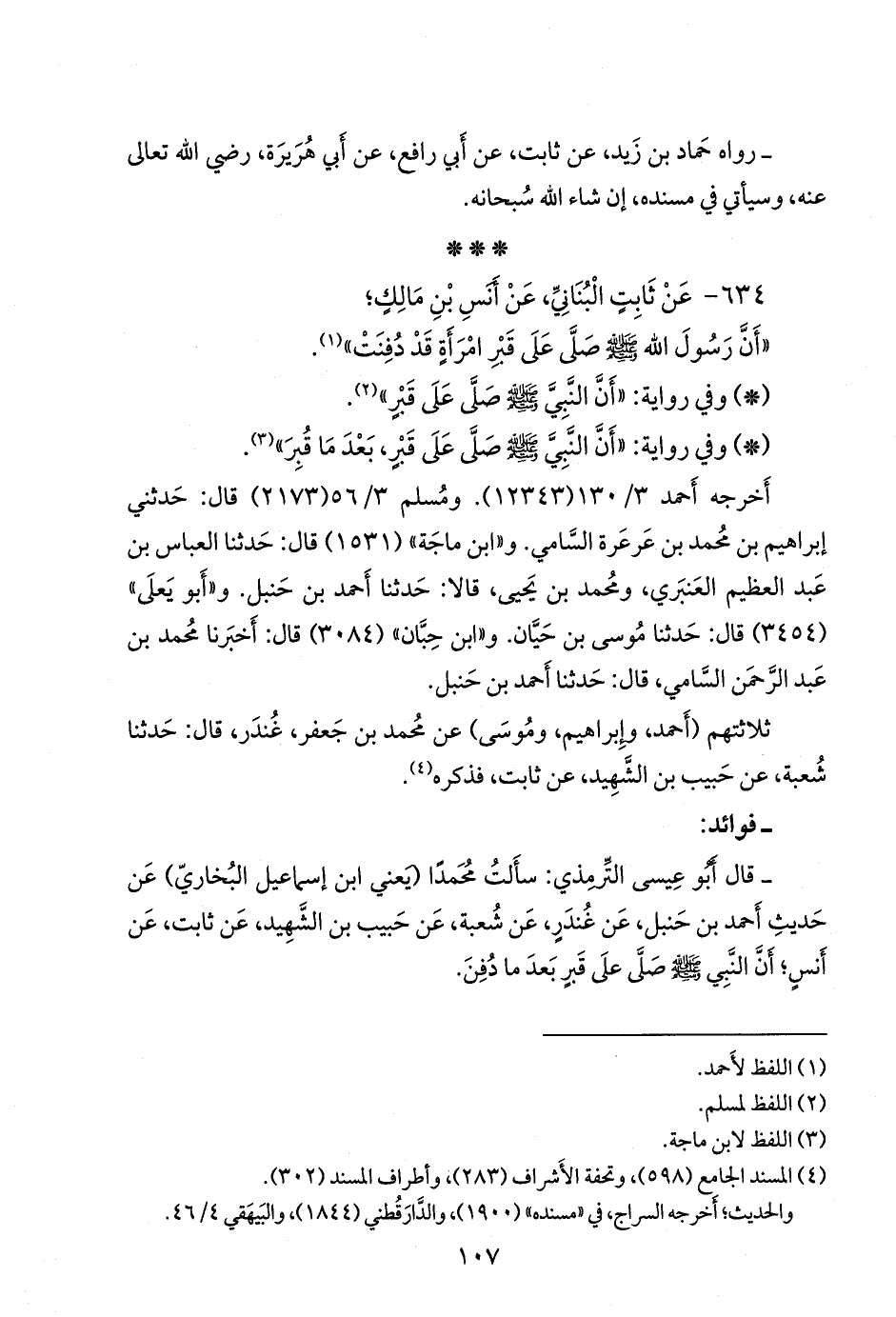 قال محمد: حدثنا أَحمد بن واقد، قال: حدثنا حماد بن زيد، عن ثابت، عن أَنس؛ أَن النبي صَلى الله عَليه وسَلم صلى على قبر.
