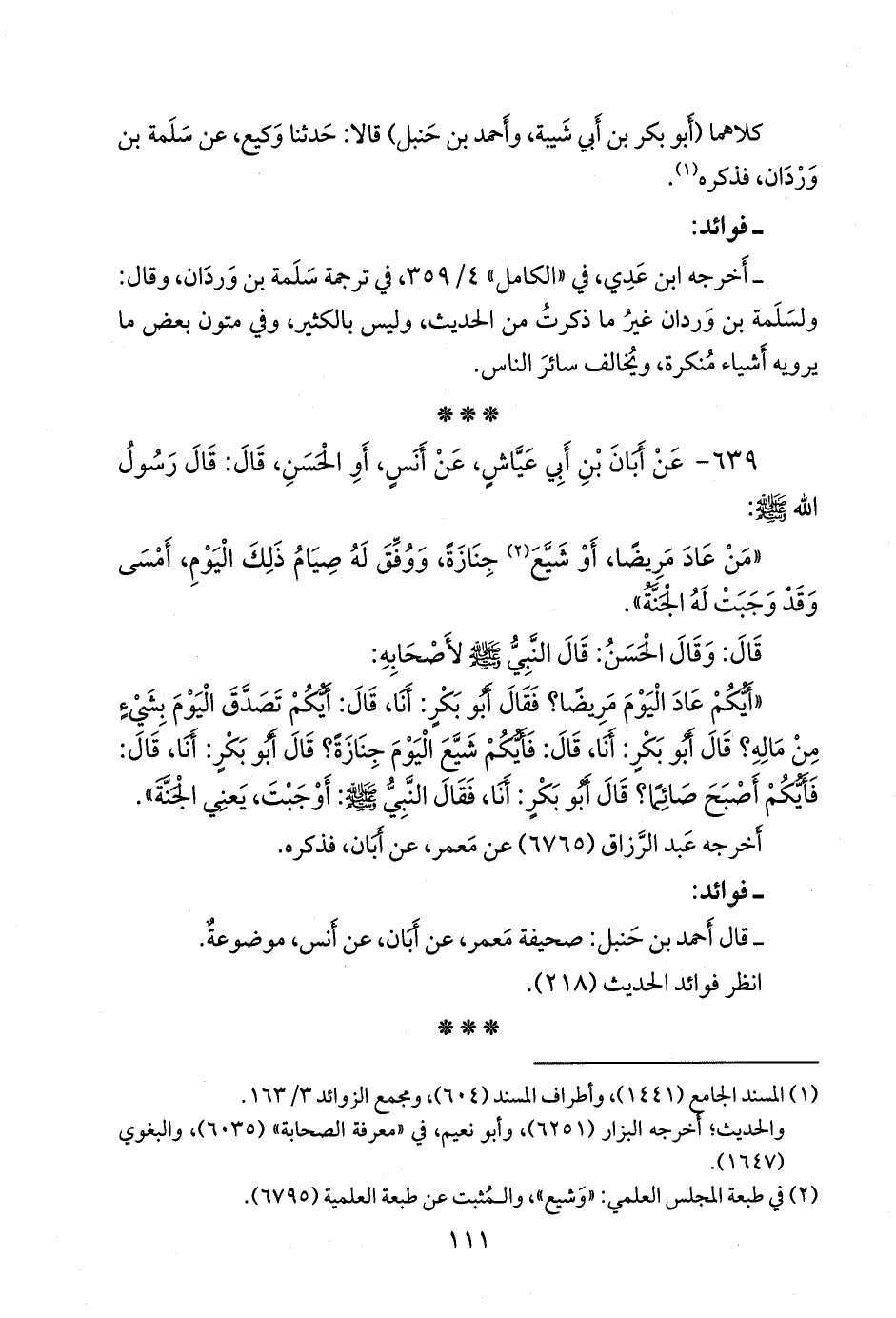 - ـ قلنا: إِسناده ضعيفٌ؛ أَبَان؛ هو ابن أَبي عَياش البصري، متروك الحديث، وصحيفة مَعمَر، عن أَبَان، عن أَنس، موضوعة. انظر فوائد الحديث رقم (٦٢٧٥).