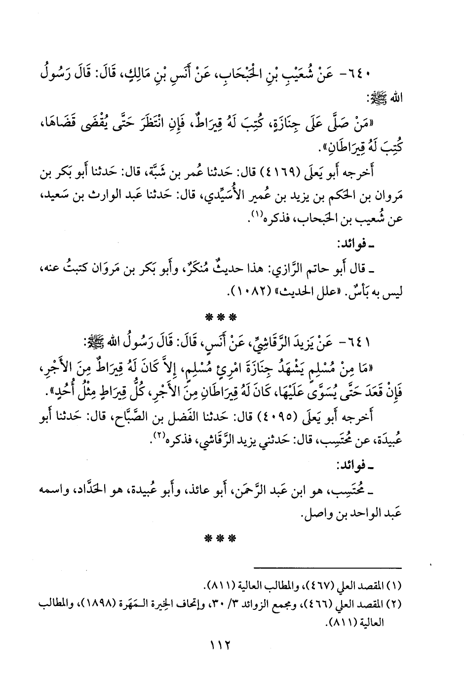 ٦٤٠ - عن شعيب بن الحَبحاب، عن أَنس بن مالك، قال: قال رسول الله صَلى الله عَليه وسَلم: