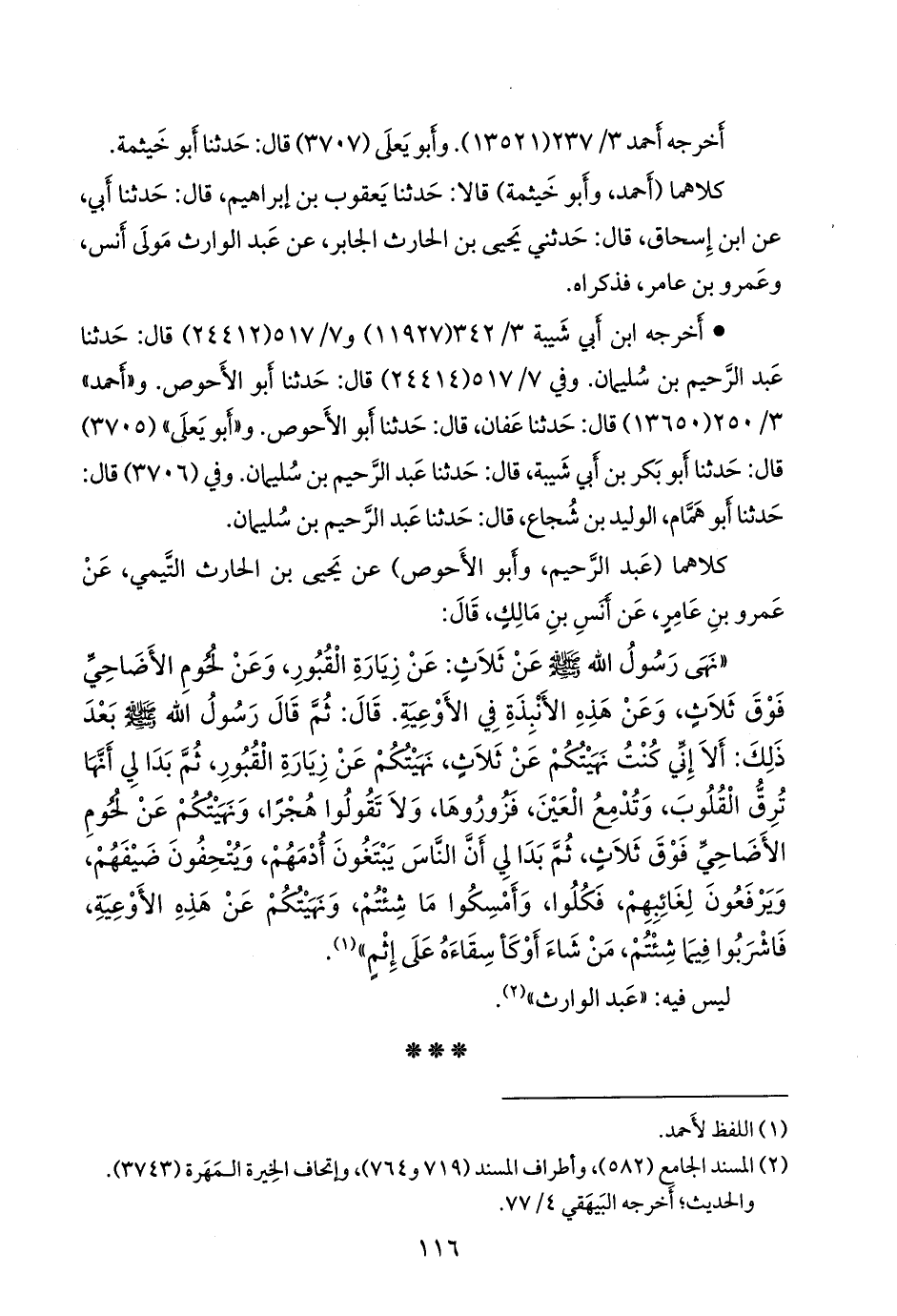 (¬٢) المسند الجامع (٥٨٢)، وأطراف المسند (٧١٩ و ٧٦٤)، وإتحاف الخِيرَة المَهَرة (٣٧٤٣).