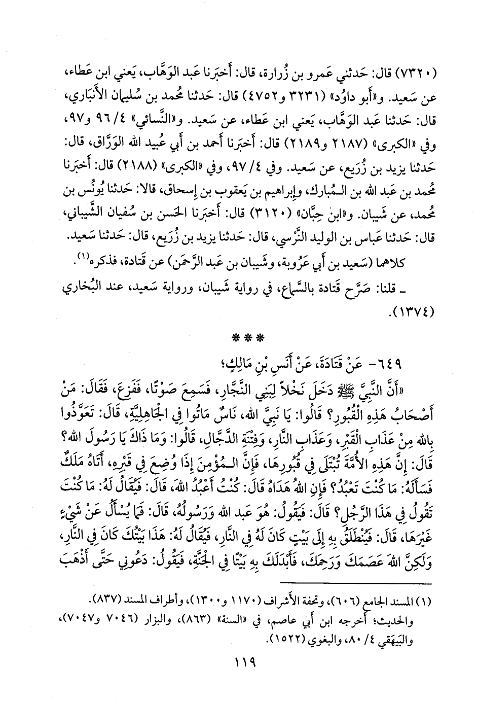 ٦٤٩ - عن قتادة، عن أَنس بن مالك؛